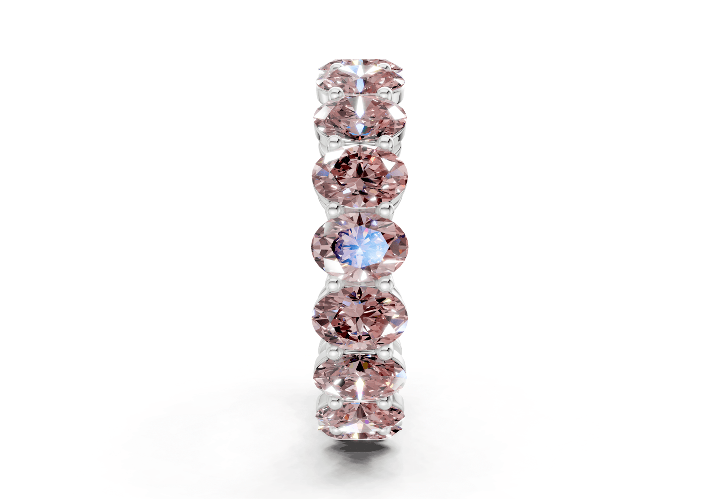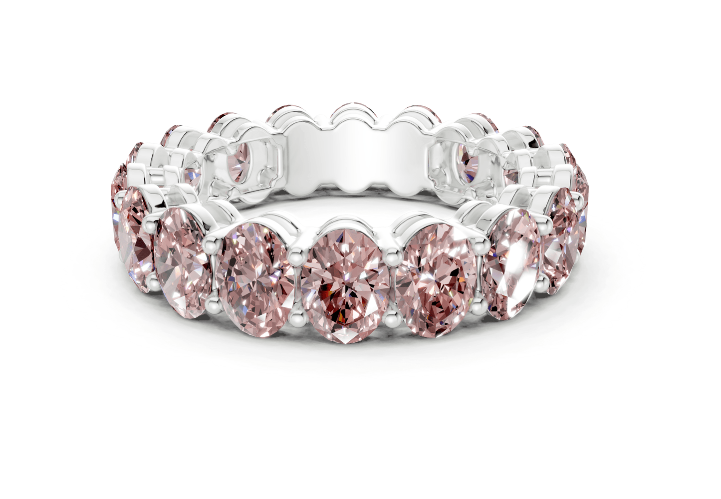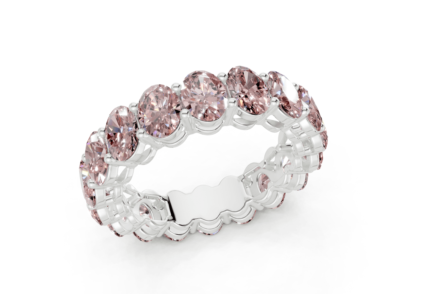 Experience elevated romance with our Melrose Oval Cut Pink Diamond Eternity Band 2½ Carat Total Wt.. Showcasing 6.5ct of soft pink lab-grown Asscher cut diamonds, set in your choice of gold or platinum. With VS-VVS clarity, each ring is finished to perfection for a true testament to enduring beauty. Presented in a stunning jewelry box for the perfect gift.