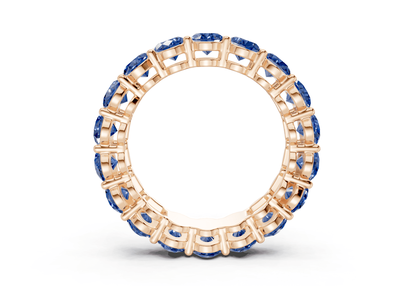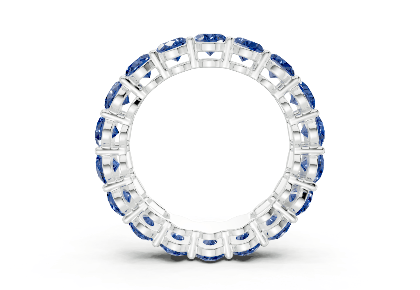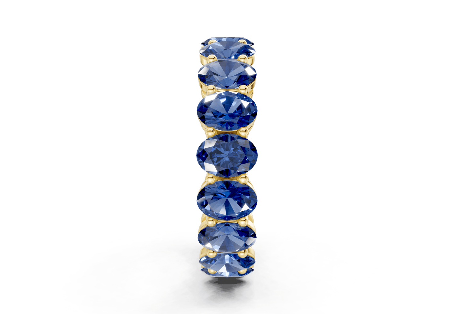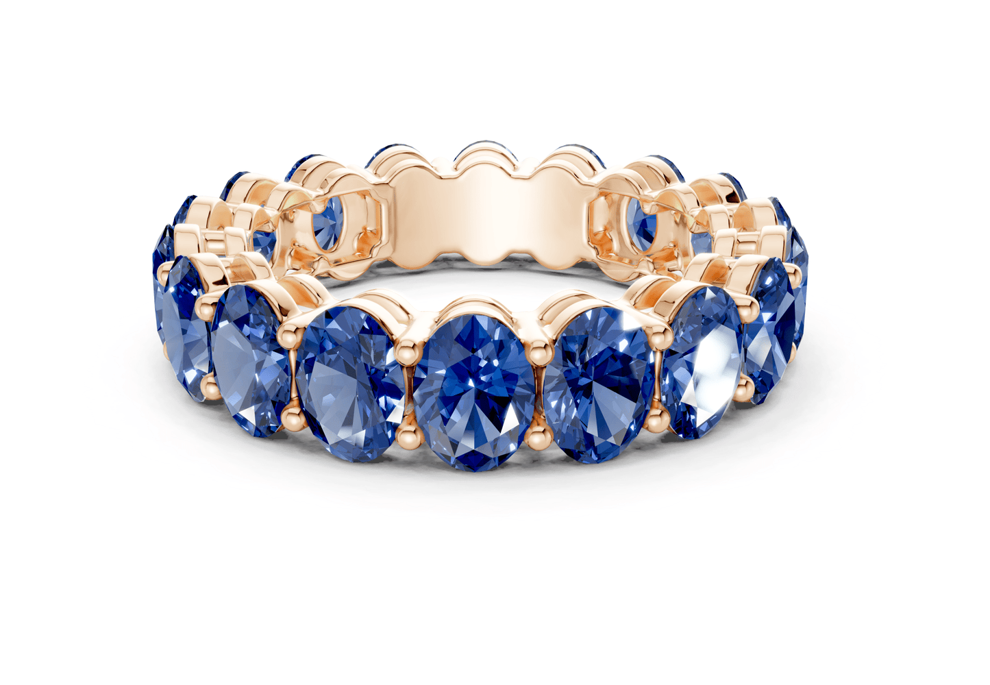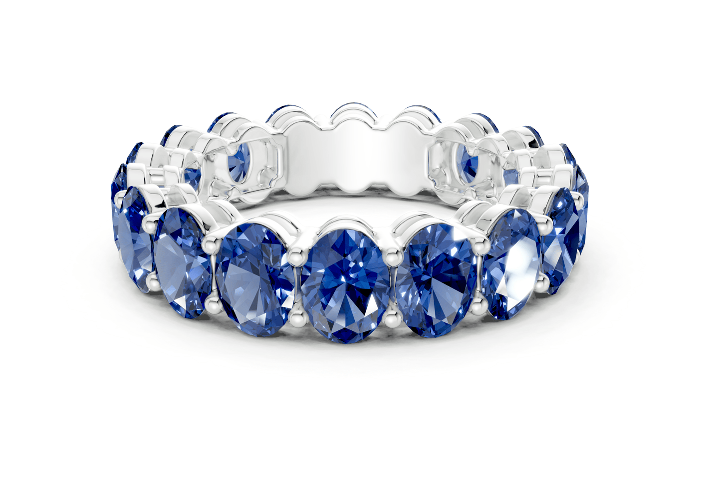 Refined and majestic with our Melrose Oval Cut Sapphire Gemstone Eternity Band 2½ Carat Total Wt.. Boasting 6.5ct of rich blue Asscher cut sapphires, set in your choice of gold or platinum. With VS-VVS clarity, each ring is finished to perfection for an heirloom-worthy piece. Presented in a stunning jewelry box for the perfect gift.