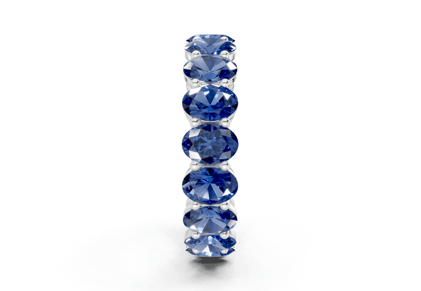 Refined and majestic with our Melrose Oval Cut Sapphire Gemstone Eternity Band 6½ Carat Total Wt.. Boasting 6.5ct of rich blue Asscher cut sapphires, set in your choice of gold or platinum. With VS-VVS clarity, each ring is finished to perfection for an heirloom-worthy piece. Presented in a stunning jewelry box for the perfect gift.