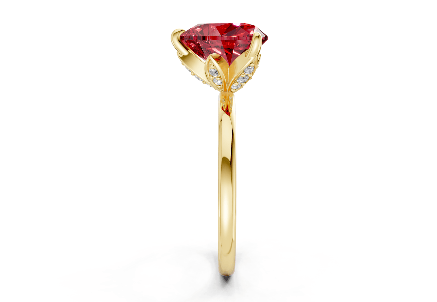 The Skye Ruby Gemstone solitaire ring features a stunning Heart-cut Ruby Gemstone in a sleek, minimalist setting. Designed to let the diamond shine, this piece embodies modern sophistication with timeless appeal. Perfect for those who appreciate refined simplicity, with the option for custom engraving to make it uniquely yours.