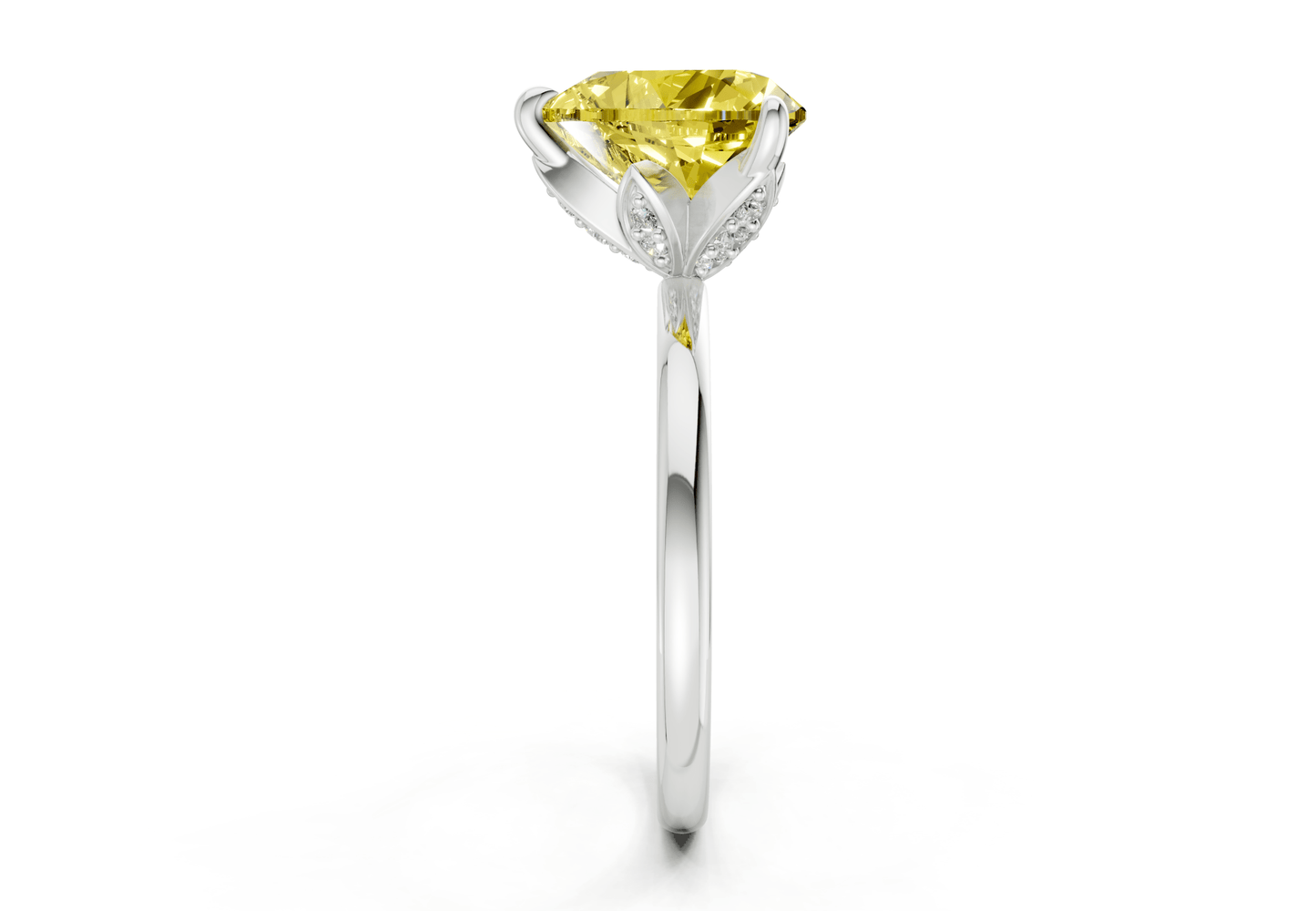 The Skye Yellow Diamond solitaire ring features a stunning Heart-cut Yellow diamond in a sleek, minimalist setting. Designed to let the diamond shine, this piece embodies modern sophistication with timeless appeal. Perfect for those who appreciate refined simplicity, with the option for custom engraving to make it uniquely yours.