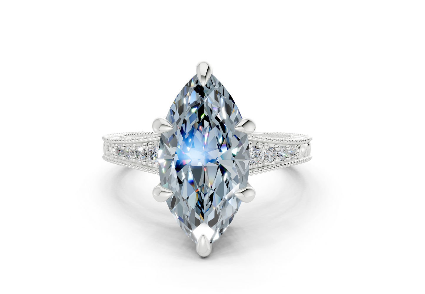 Asteria Blue Diamond Vintage Marquise Cut 2mm Engagement Ring