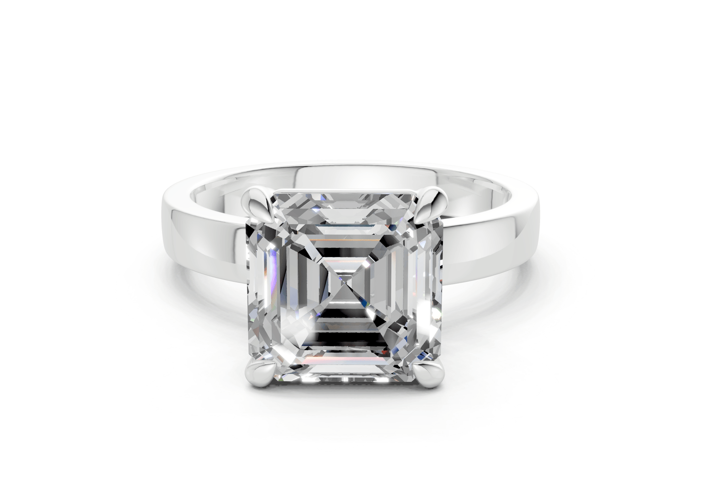 The Aspen Diamond solitaire ring features a stunning Asscher-cut diamond in a sleek, minimalist setting. Designed to let the diamond shine, this piece embodies modern sophistication with timeless appeal. Perfect for those who appreciate refined simplicity, with the option for custom engraving to make it uniquely yours.