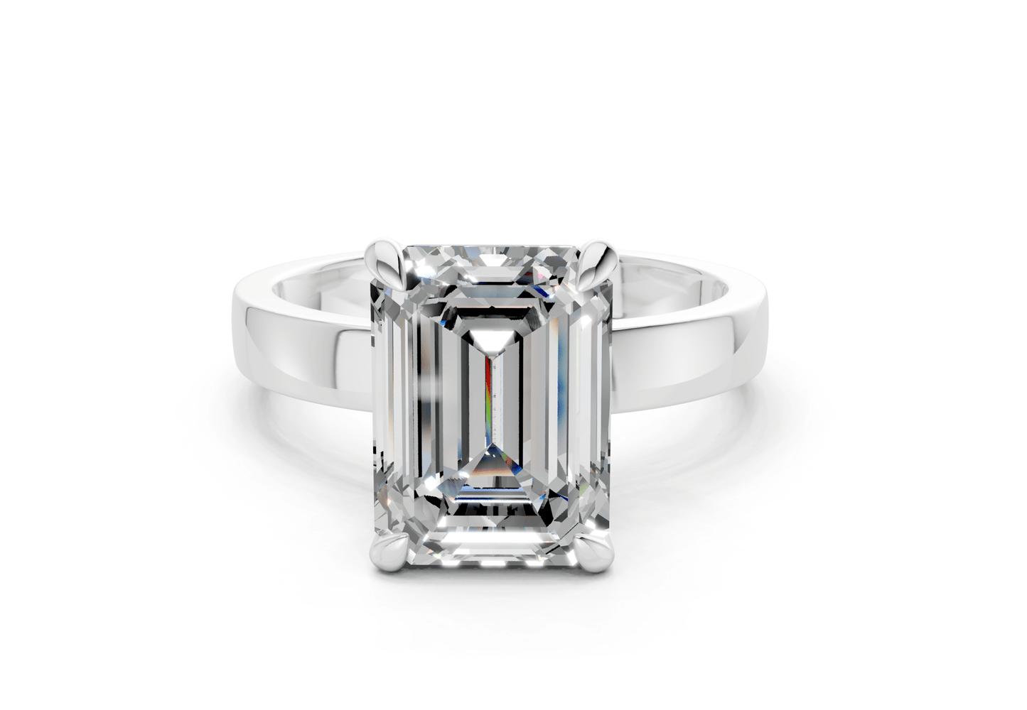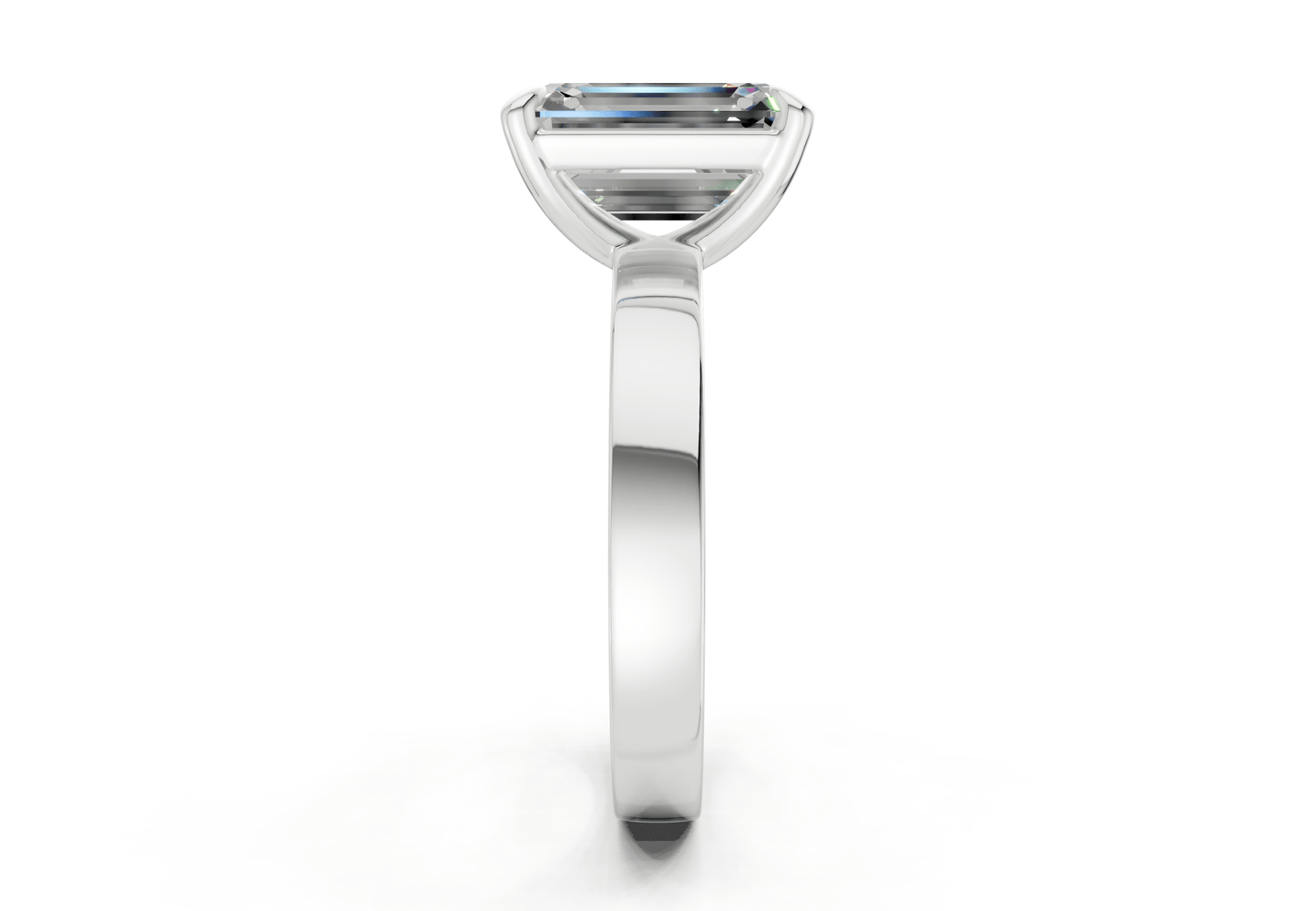 The Aspen Diamond solitaire ring features a stunning Emerald-cut diamond in a sleek, minimalist setting. Designed to let the diamond shine, this piece embodies modern sophistication with timeless appeal. Perfect for those who appreciate refined simplicity, with the option for custom engraving to make it uniquely yours.