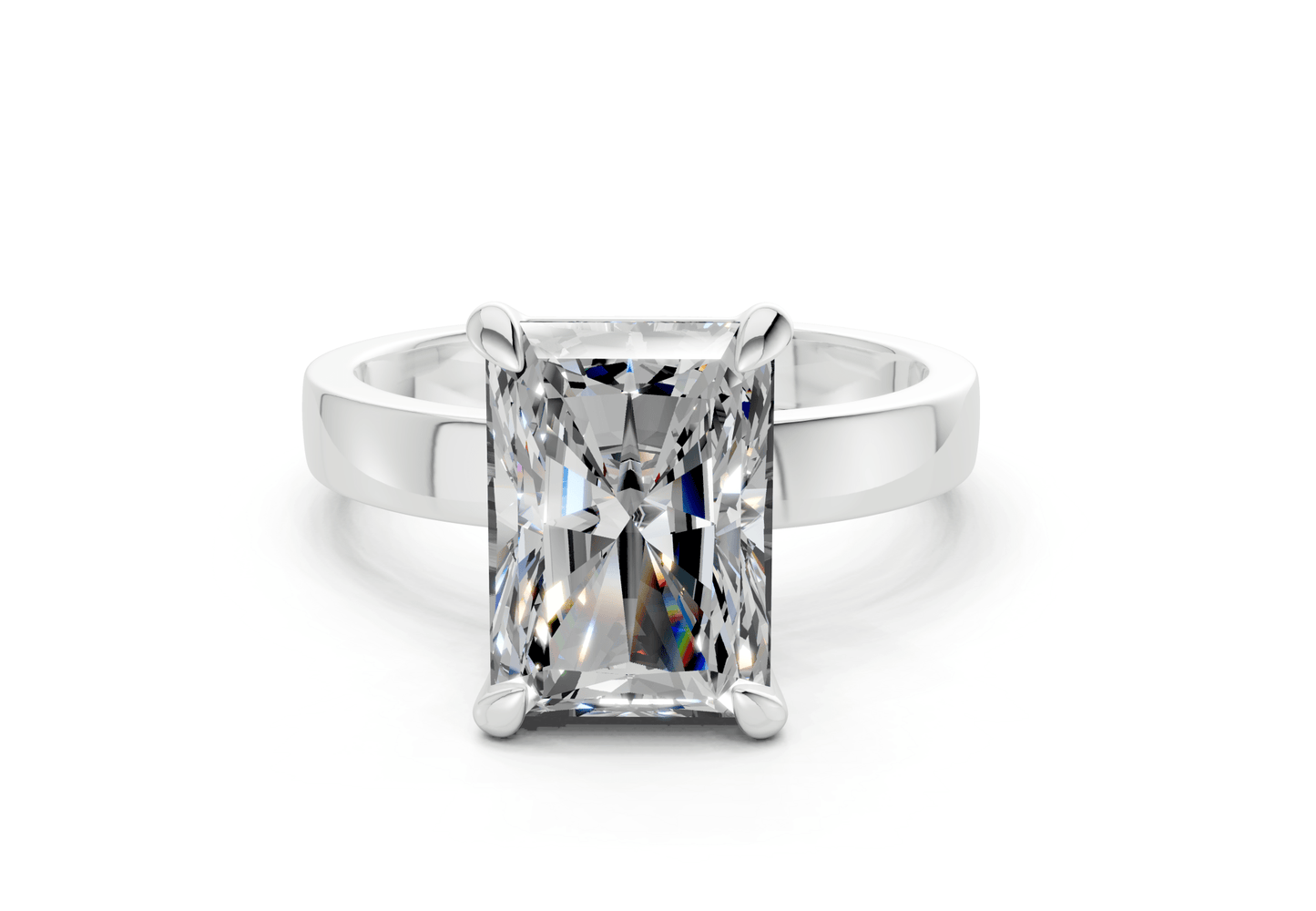 The Aspen Diamond solitaire ring features a stunning Radiant-cut diamond in a sleek, minimalist setting. Designed to let the diamond shine, this piece embodies modern sophistication with timeless appeal. Perfect for those who appreciate refined simplicity, with the option for custom engraving to make it uniquely yours.