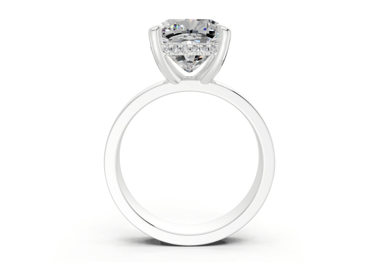 The Echo Diamond solitaire ring features a stunning Cushion Squareuare-cut diamond in a sleek, minimalist setting. Designed to let the diamond shine, this piece embodies modern sophistication with timeless appeal. Perfect for those who appreciate refined simplicity, with the option for custom engraving to make it uniquely yours.
