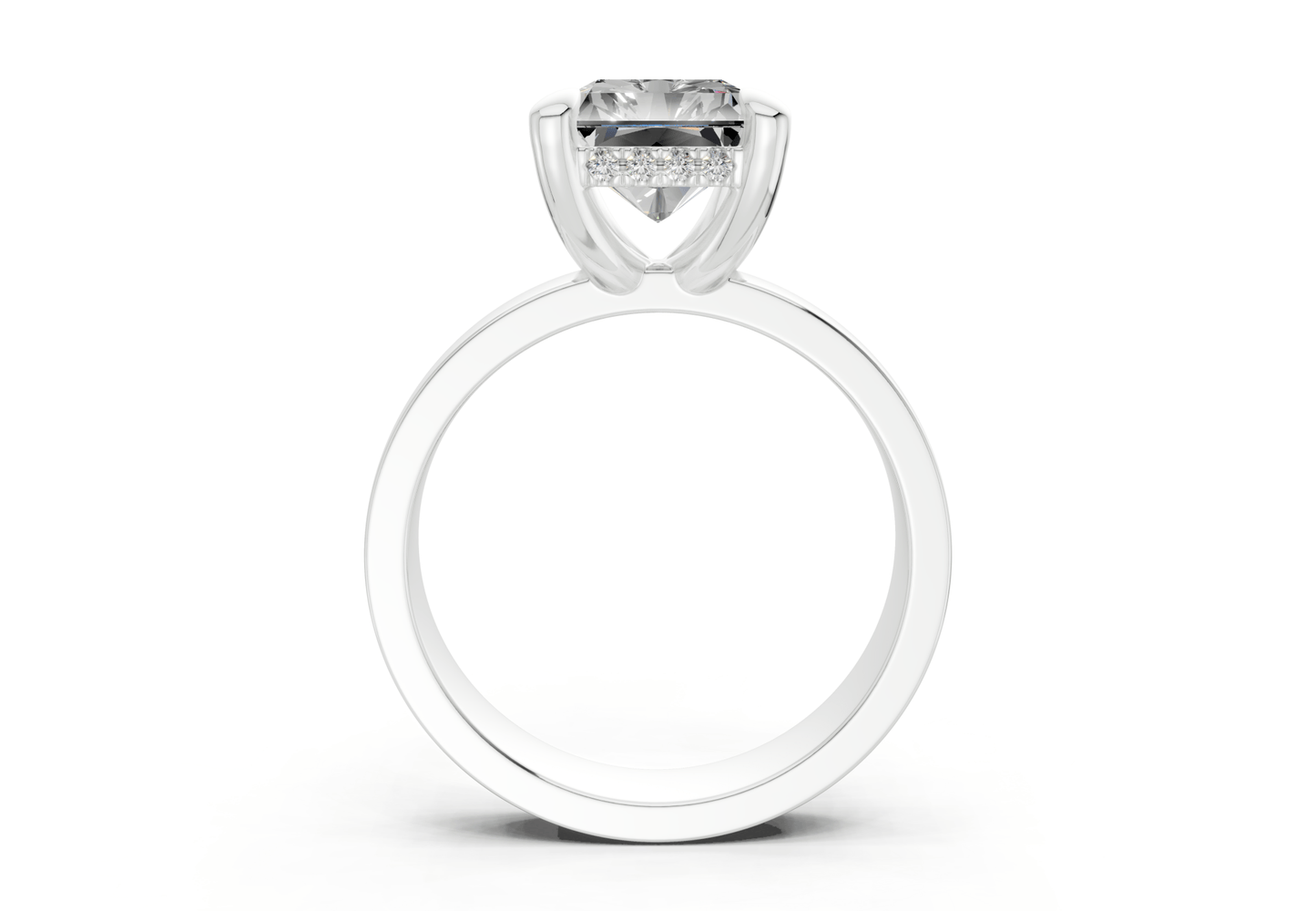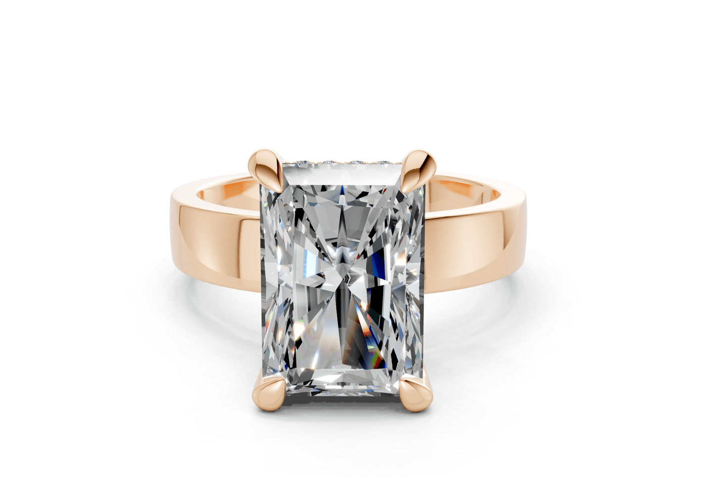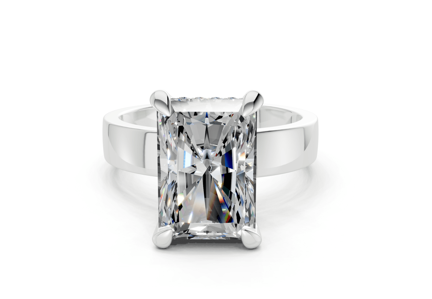 The Echo Diamond solitaire ring features a stunning Radiant-cut diamond in a sleek, minimalist setting. Designed to let the diamond shine, this piece embodies modern sophistication with timeless appeal. Perfect for those who appreciate refined simplicity, with the option for custom engraving to make it uniquely yours.