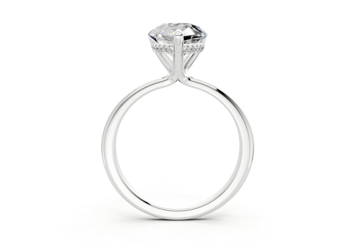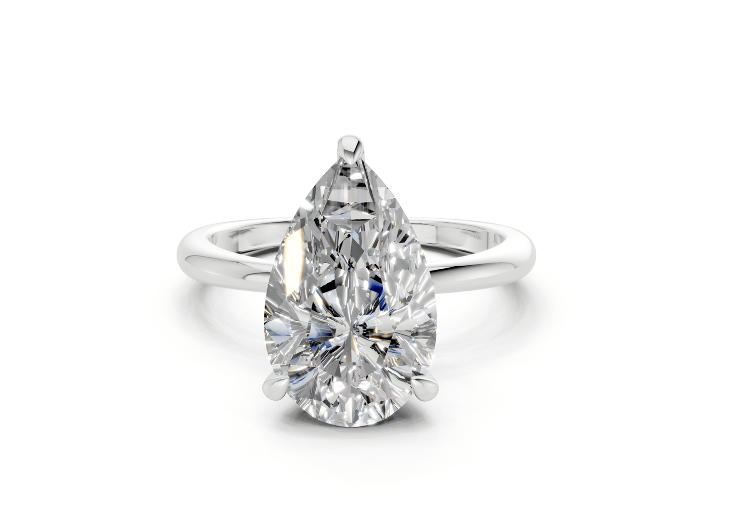 The Marlowe Diamond solitaire ring features a stunning Pear-cut diamond in a sleek, minimalist setting. Designed to let the diamond shine, this piece embodies modern sophistication with timeless appeal. Perfect for those who appreciate refined simplicity, with the option for custom engraving to make it uniquely yours.