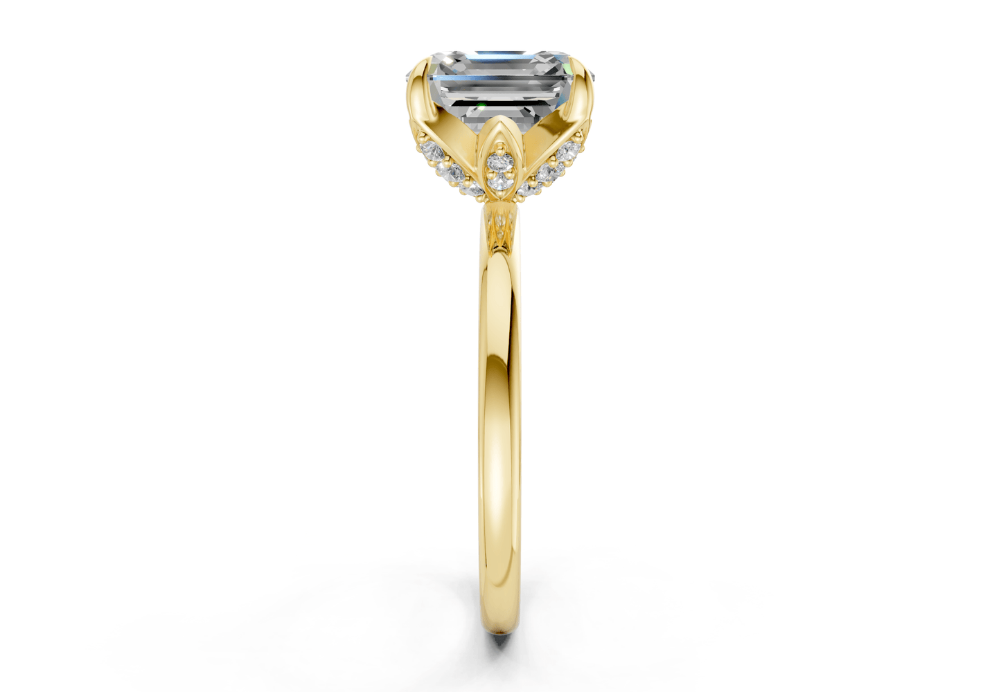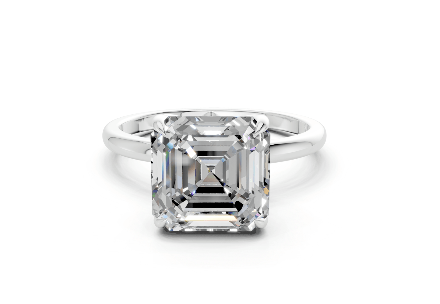 The Skye Diamond solitaire ring features a stunning Asscher-cut diamond in a sleek, minimalist setting. Designed to let the diamond shine, this piece embodies modern sophistication with timeless appeal. Perfect for those who appreciate refined simplicity, with the option for custom engraving to make it uniquely yours.