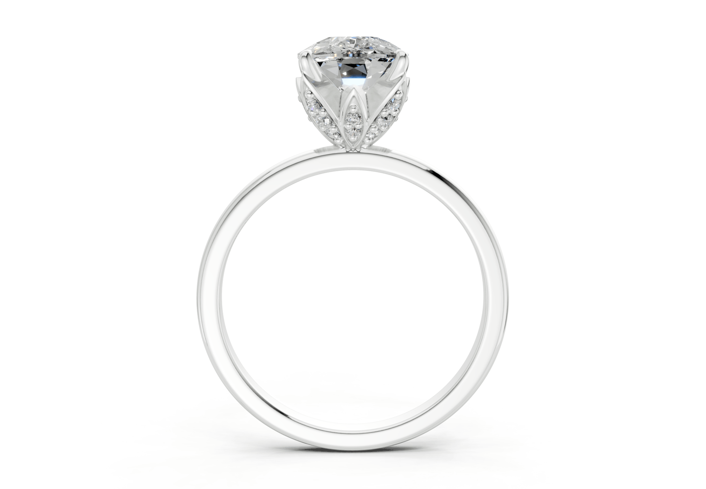 The Skye Diamond solitaire ring features a stunning Elongated Cushion-cut diamond in a sleek, minimalist setting. Designed to let the diamond shine, this piece embodies modern sophistication with timeless appeal. Perfect for those who appreciate refined simplicity, with the option for custom engraving to make it uniquely yours.