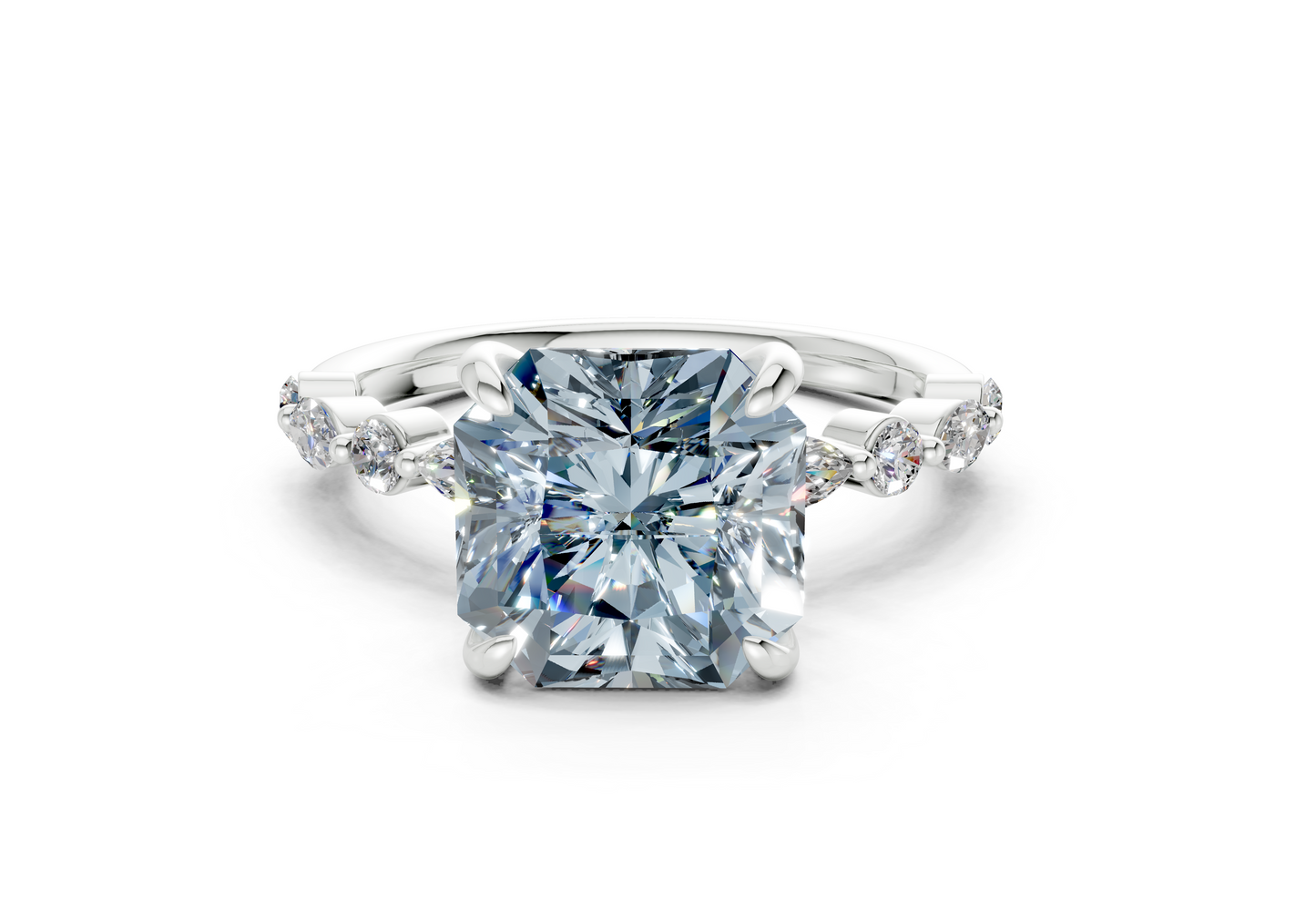Aetheria Blue Diamond Accent Radiant Square Cut 2mm Engagement Ring