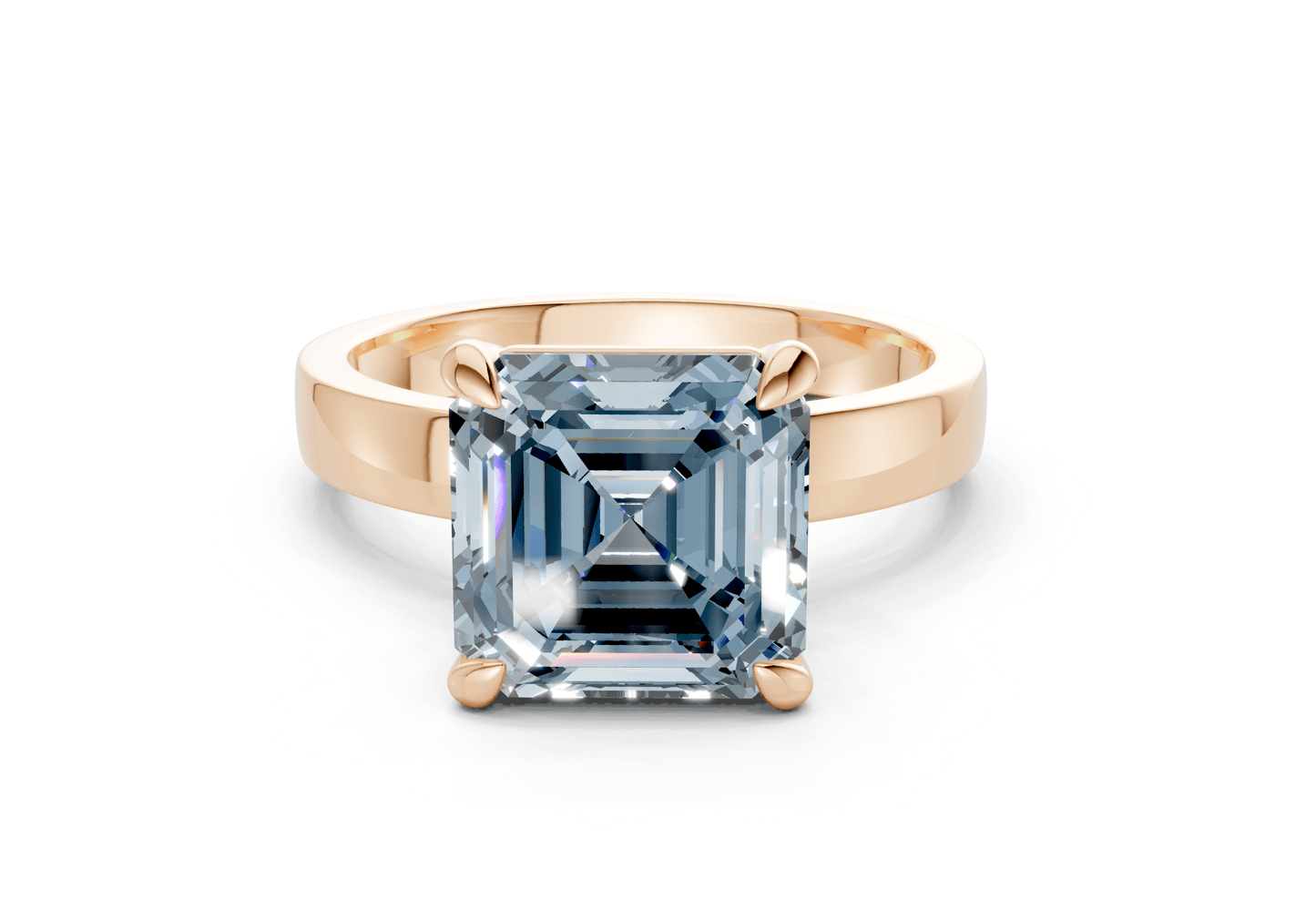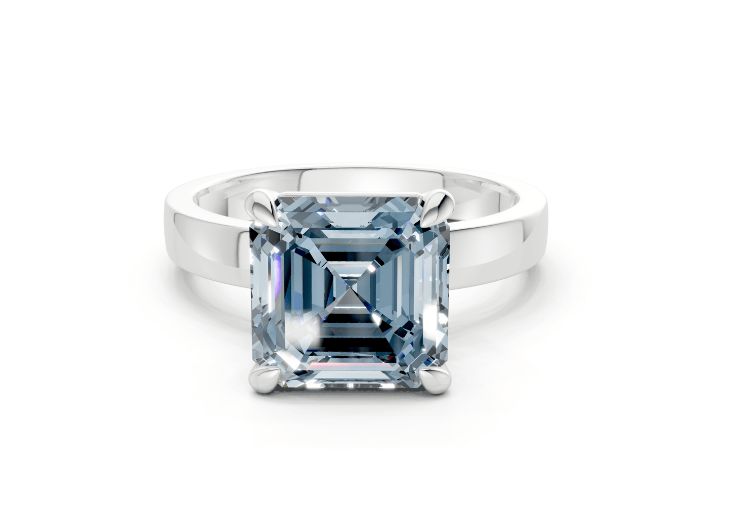 The Aspen Blue Diamond solitaire ring features a stunning Asscher-cut Blue diamond in a sleek, minimalist setting. Designed to let the diamond shine, this piece embodies modern sophistication with timeless appeal. Perfect for those who appreciate refined simplicity, with the option for custom engraving to make it uniquely yours.