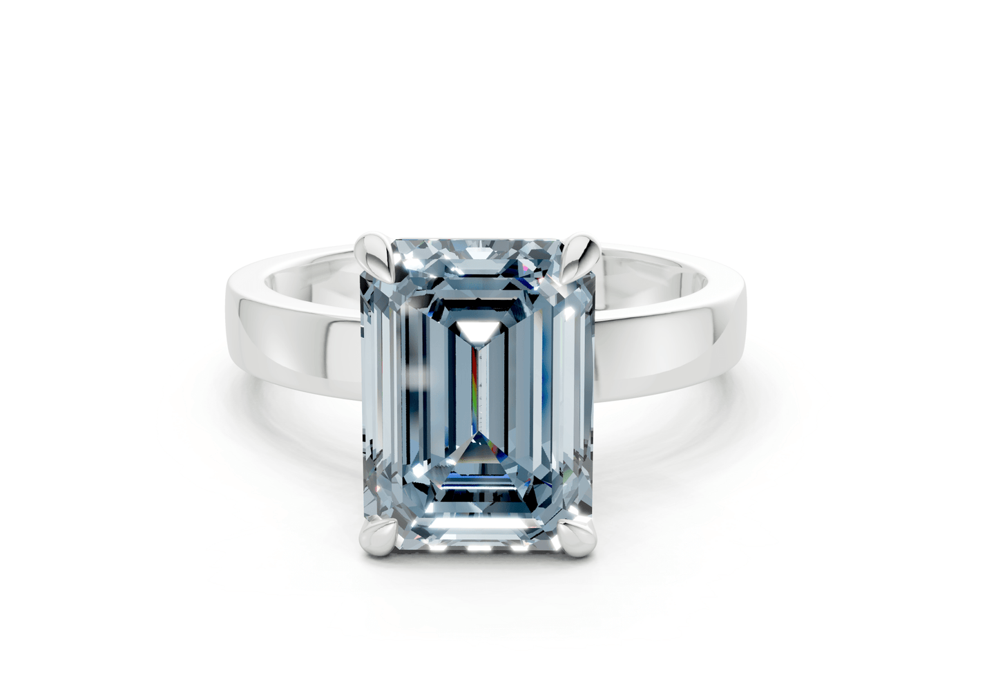 The Aspen Blue Diamond solitaire ring features a stunning Emerald-cut Blue diamond in a sleek, minimalist setting. Designed to let the diamond shine, this piece embodies modern sophistication with timeless appeal. Perfect for those who appreciate refined simplicity, with the option for custom engraving to make it uniquely yours.