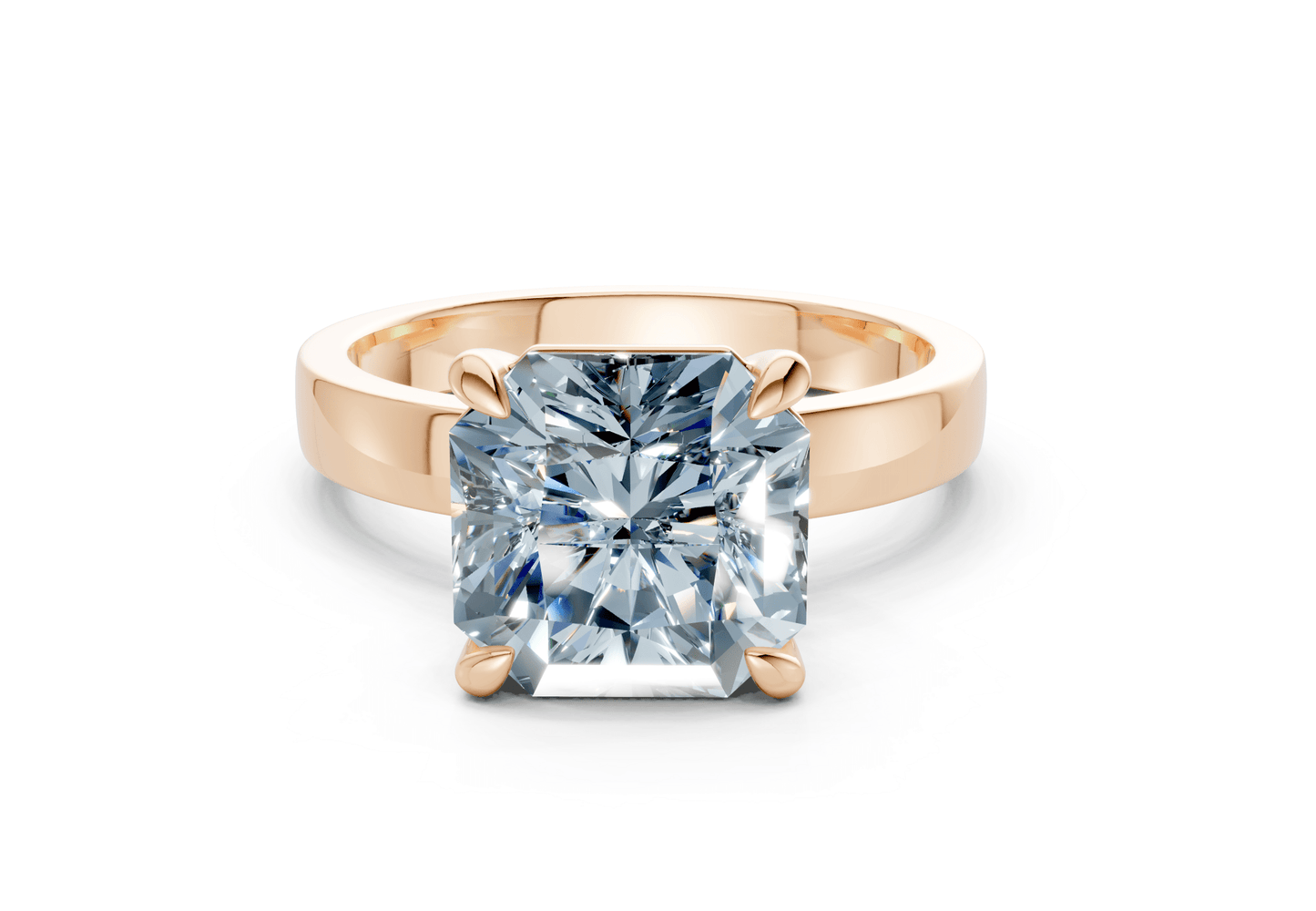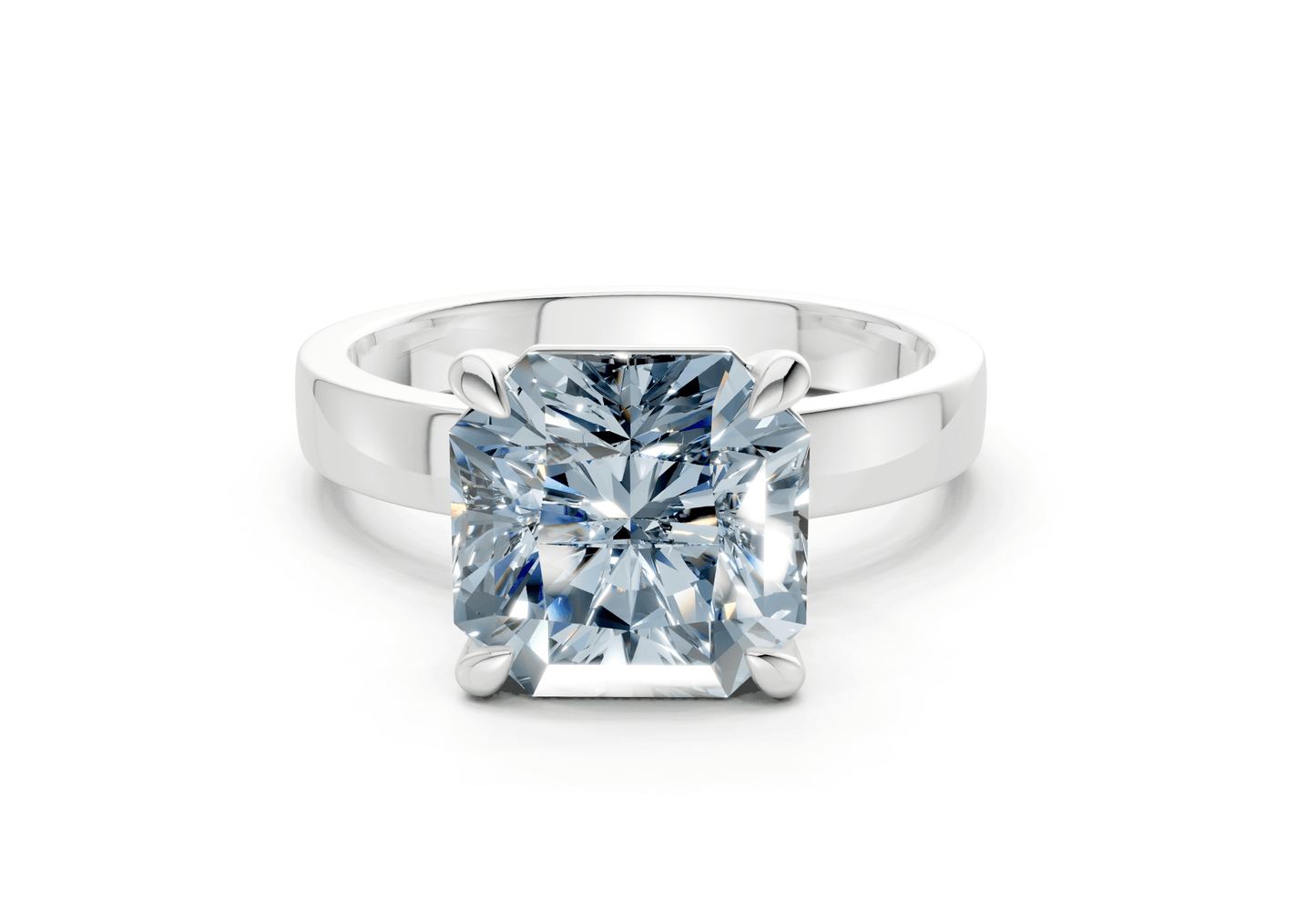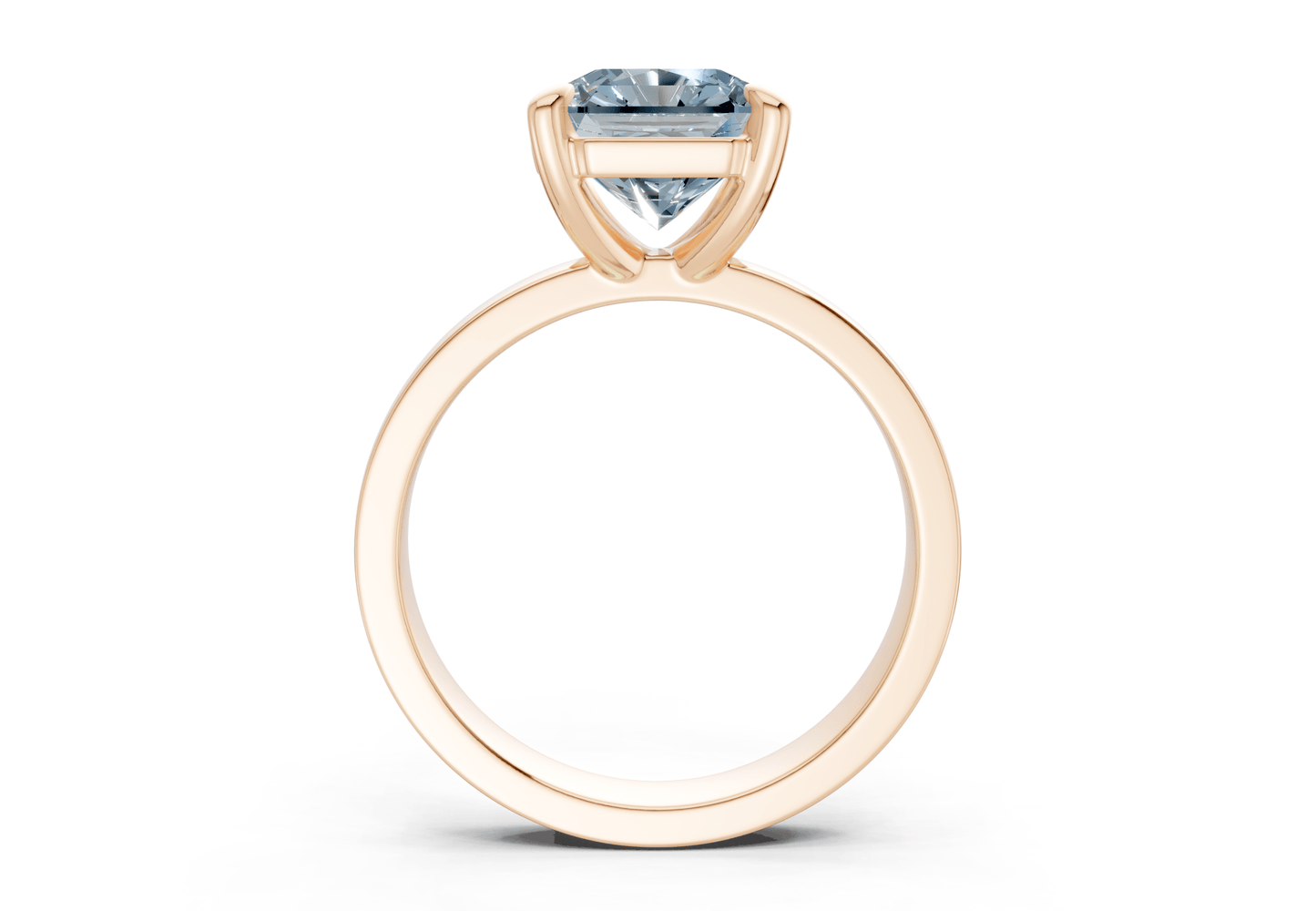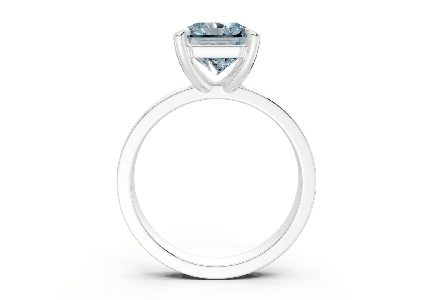 The Aspen Blue Diamond solitaire ring features a stunning Radiant Squareuare-cut Blue diamond in a sleek, minimalist setting. Designed to let the diamond shine, this piece embodies modern sophistication with timeless appeal. Perfect for those who appreciate refined simplicity, with the option for custom engraving to make it uniquely yours.