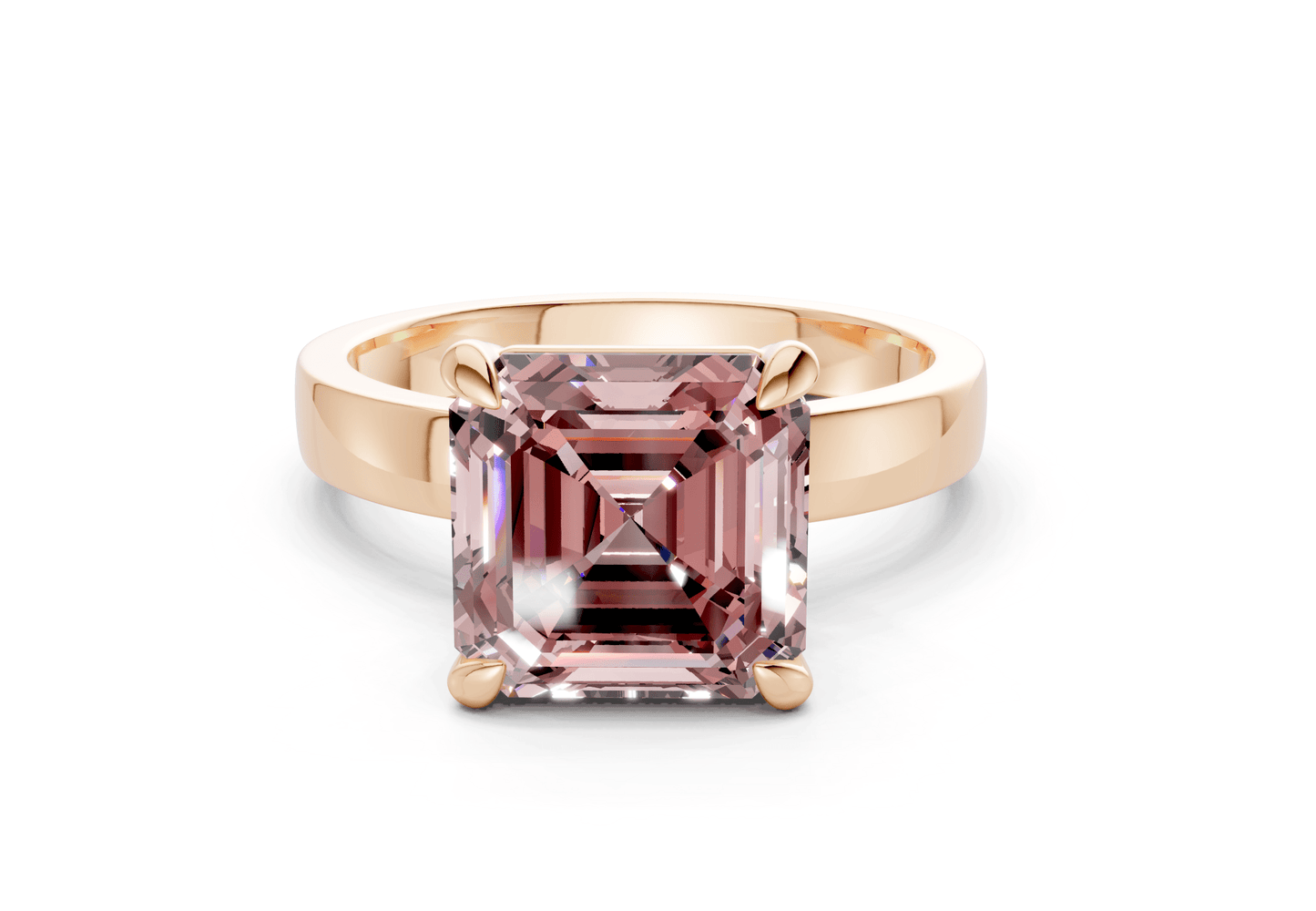 The Aspen Pink Diamond solitaire ring features a stunning Asscher-cut Pink diamond in a sleek, minimalist setting. Designed to let the diamond shine, this piece embodies modern sophistication with timeless appeal. Perfect for those who appreciate refined simplicity, with the option for custom engraving to make it uniquely yours.
