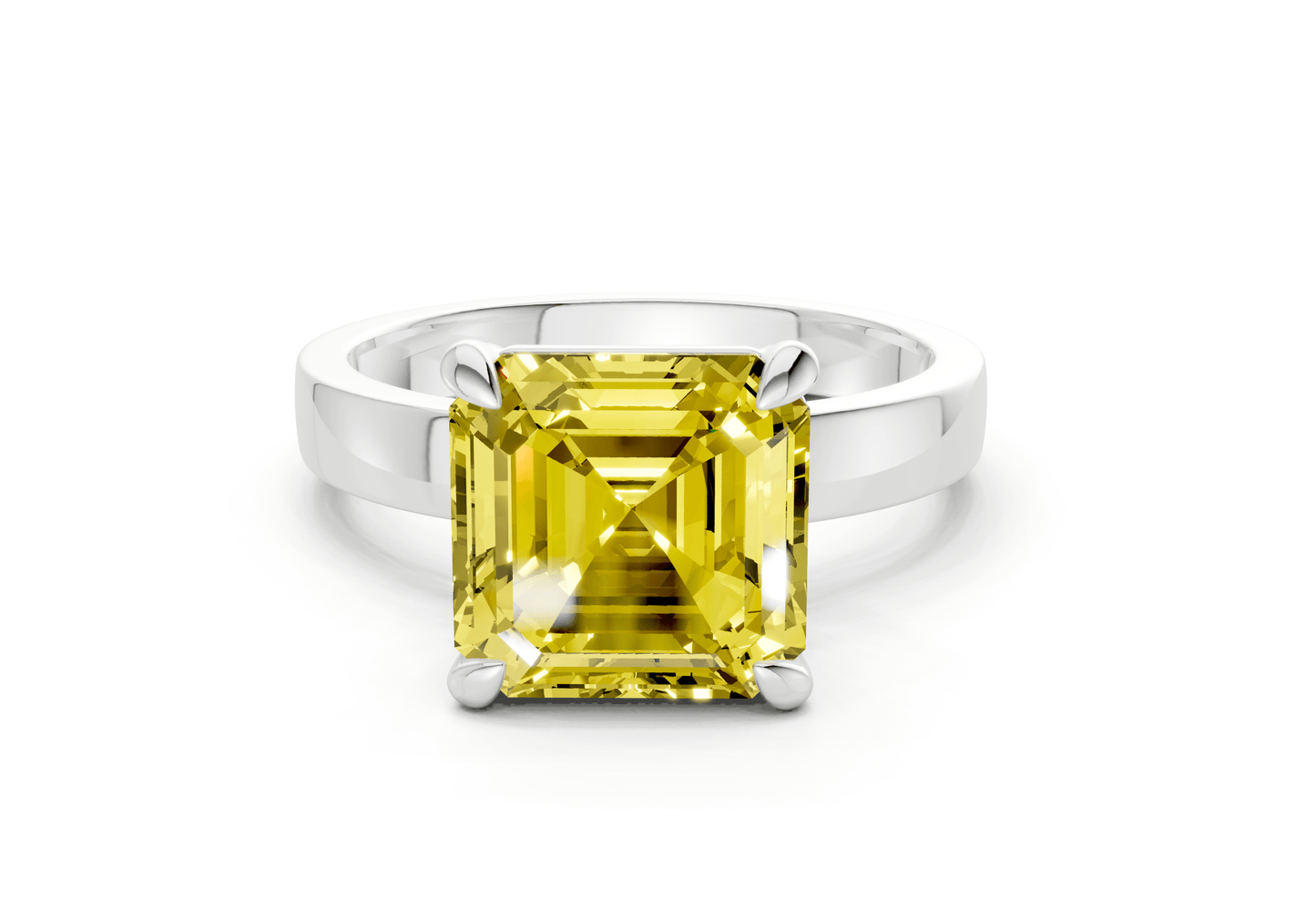 The Aspen Yellow Diamond solitaire ring features a stunning Asscher-cut Yellow diamond in a sleek, minimalist setting. Designed to let the diamond shine, this piece embodies modern sophistication with timeless appeal. Perfect for those who appreciate refined simplicity, with the option for custom engraving to make it uniquely yours.