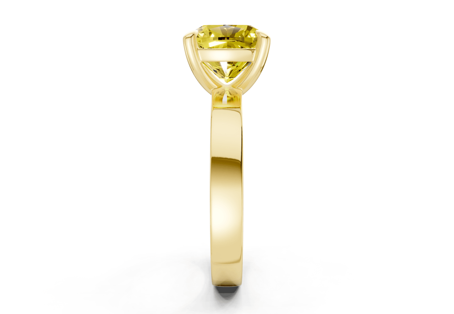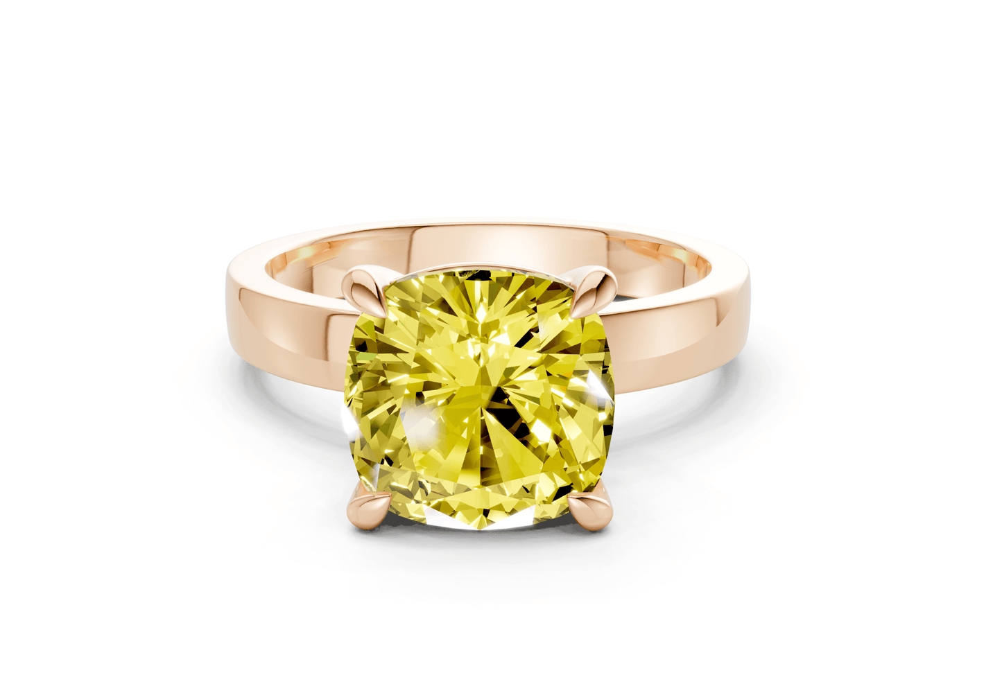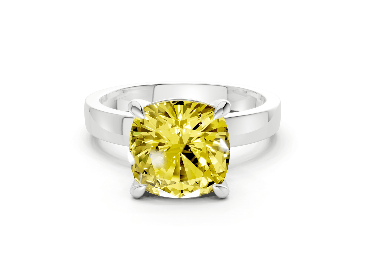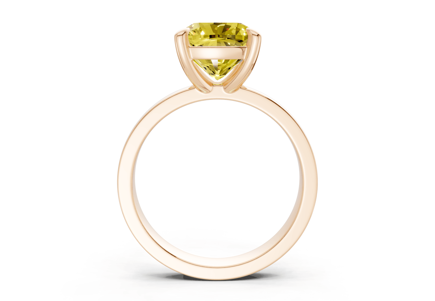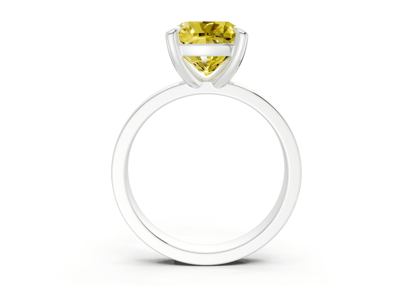 The Aspen Yellow Diamond solitaire ring features a stunning Cushion Squareuare-cut Yellow diamond in a sleek, minimalist setting. Designed to let the diamond shine, this piece embodies modern sophistication with timeless appeal. Perfect for those who appreciate refined simplicity, with the option for custom engraving to make it uniquely yours.