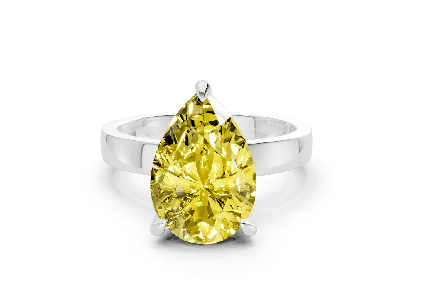 The Aspen Yellow Diamond solitaire ring features a stunning Pear-cut Yellow diamond in a sleek, minimalist setting. Designed to let the diamond shine, this piece embodies modern sophistication with timeless appeal. Perfect for those who appreciate refined simplicity, with the option for custom engraving to make it uniquely yours.