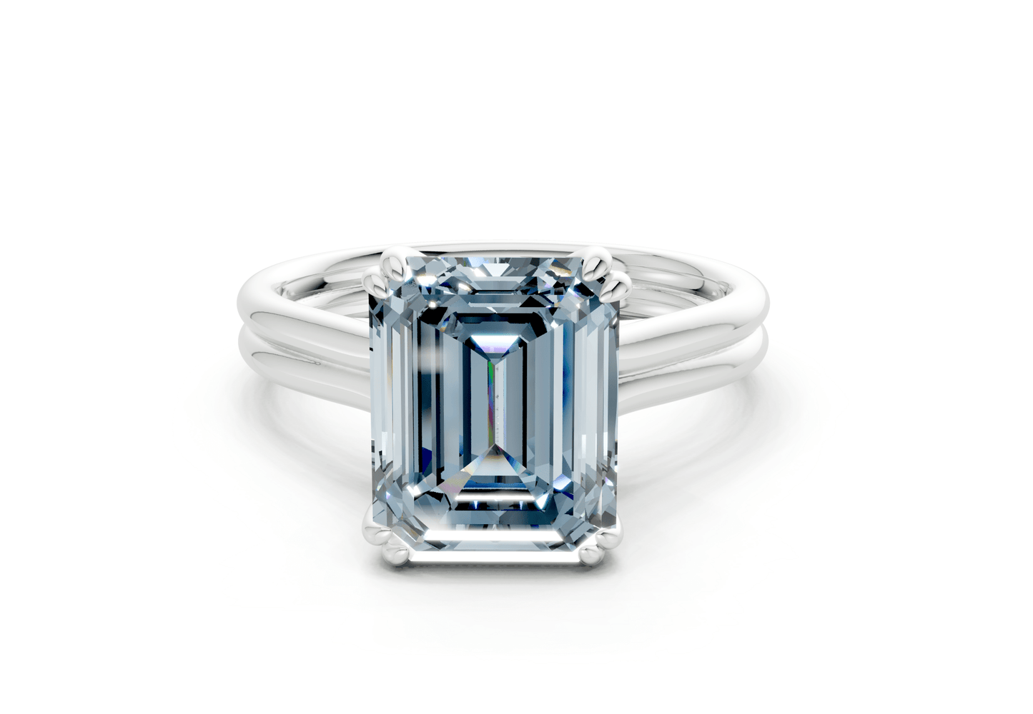 Audrey Blue Diamond Solitaire Emerald Cut 3.1mm Engagement Ring