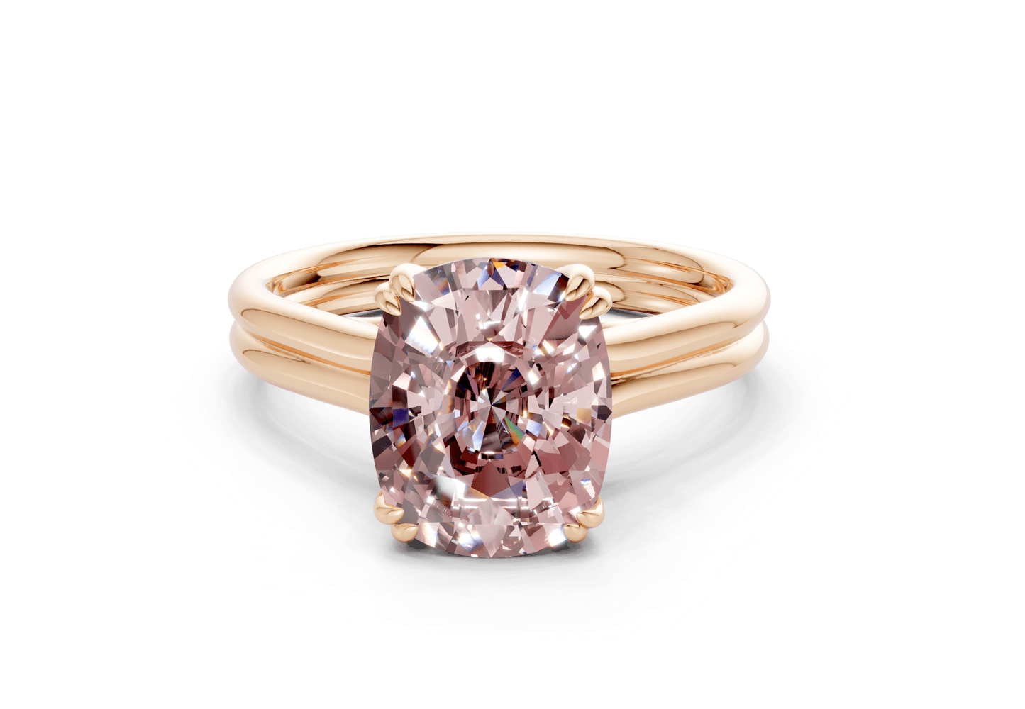 The Audrey Pink Diamond solitaire ring features a stunning Elongated Cushion-cut Pink diamond in a sleek, minimalist setting. Designed to let the diamond shine, this piece embodies modern sophistication with timeless appeal. Perfect for those who appreciate refined simplicity, with the option for custom engraving to make it uniquely yours.