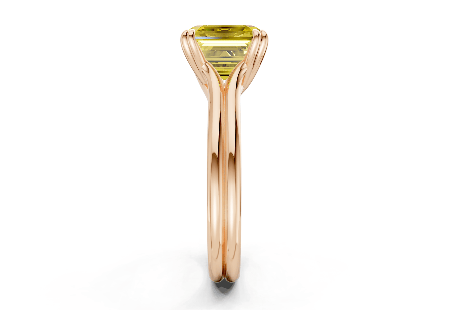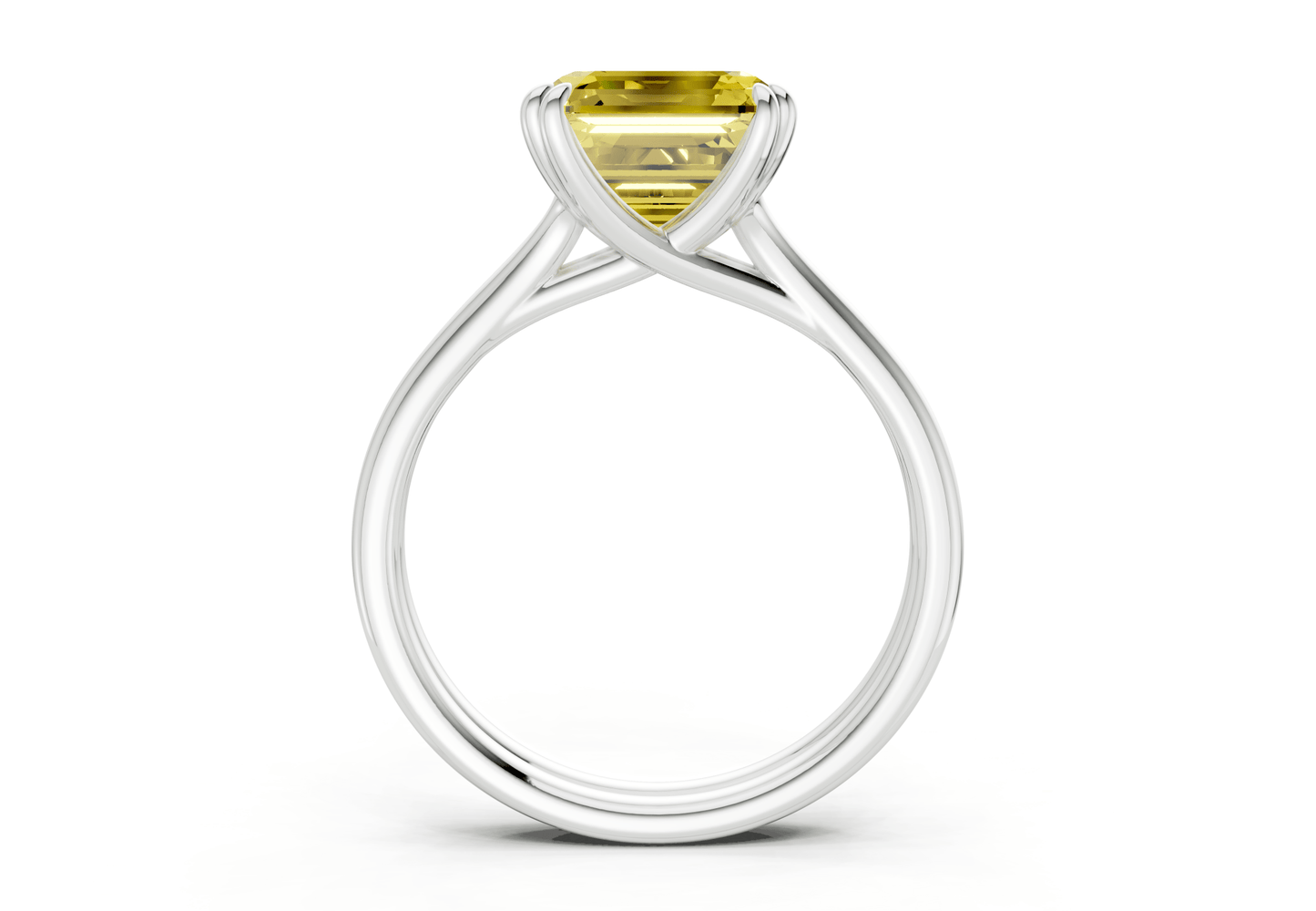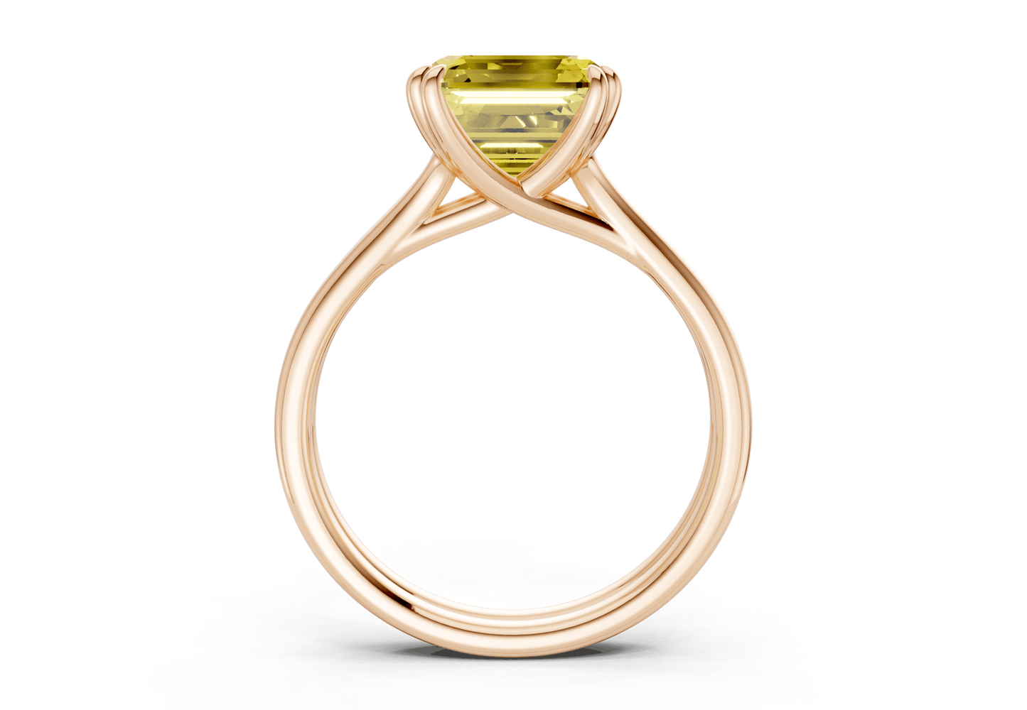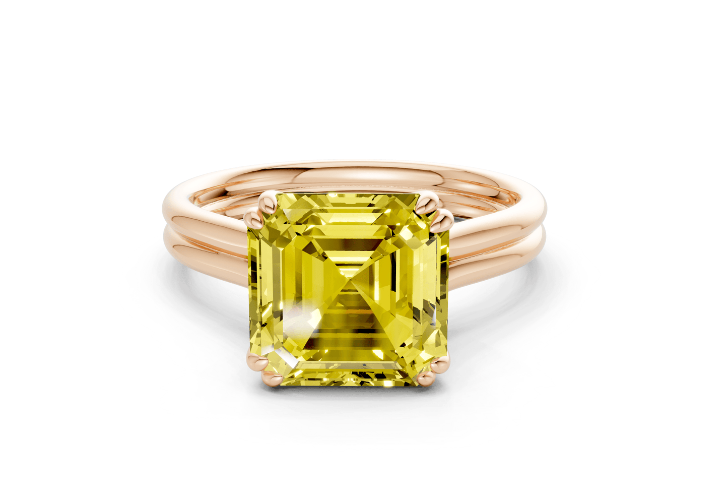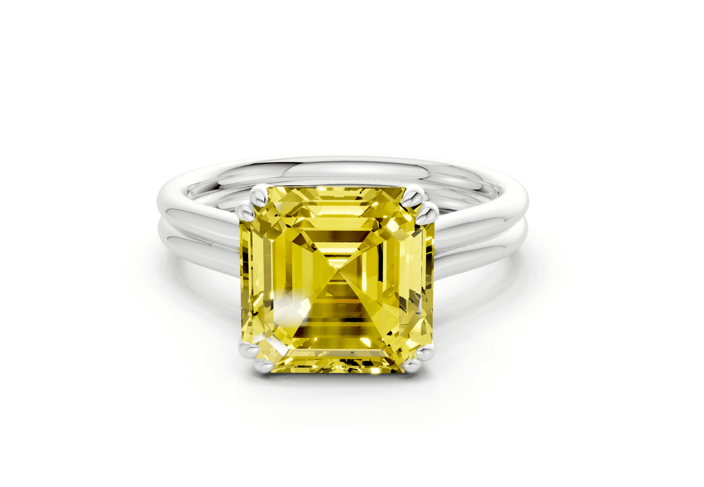 The Audrey Yellow Diamond solitaire ring features a stunning Asscher-cut Yellow diamond in a sleek, minimalist setting. Designed to let the diamond shine, this piece embodies modern sophistication with timeless appeal. Perfect for those who appreciate refined simplicity, with the option for custom engraving to make it uniquely yours.