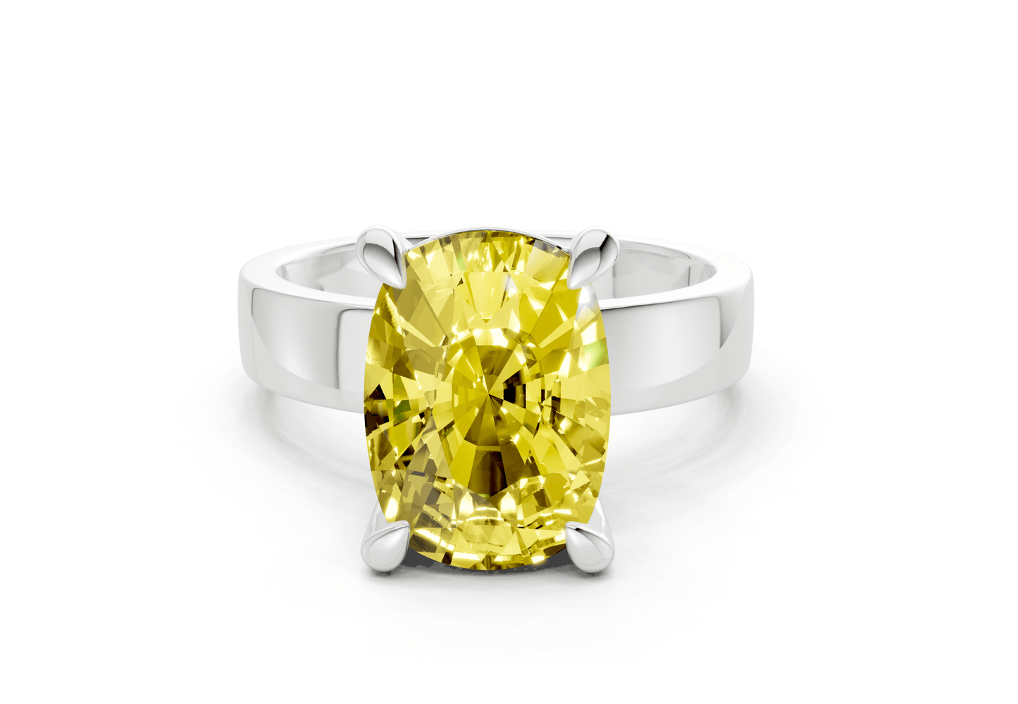 The Cascade Yellow Diamond solitaire ring features a stunning Elongated Cushion-cut Yellow diamond in a sleek, minimalist setting. Designed to let the diamond shine, this piece embodies modern sophistication with timeless appeal. Perfect for those who appreciate refined simplicity, with the option for custom engraving to make it uniquely yours.