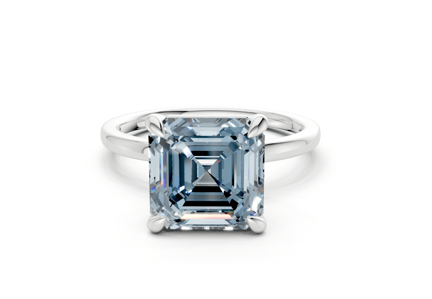 The Clementine Blue Diamond solitaire ring features a stunning Asscher-cut Blue diamond in a sleek, minimalist setting. Designed to let the diamond shine, this piece embodies modern sophistication with timeless appeal. Perfect for those who appreciate refined simplicity, with the option for custom engraving to make it uniquely yours.