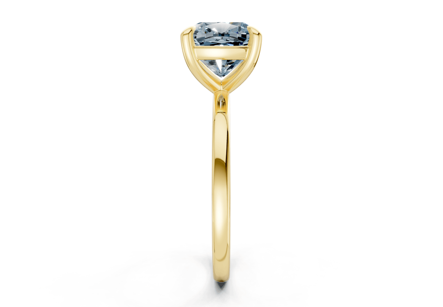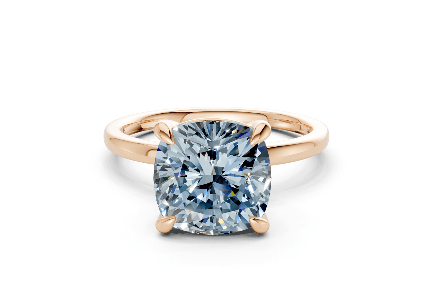 The Clementine Blue Diamond solitaire ring features a stunning Cushion Squareuare-cut Blue diamond in a sleek, minimalist setting. Designed to let the diamond shine, this piece embodies modern sophistication with timeless appeal. Perfect for those who appreciate refined simplicity, with the option for custom engraving to make it uniquely yours.