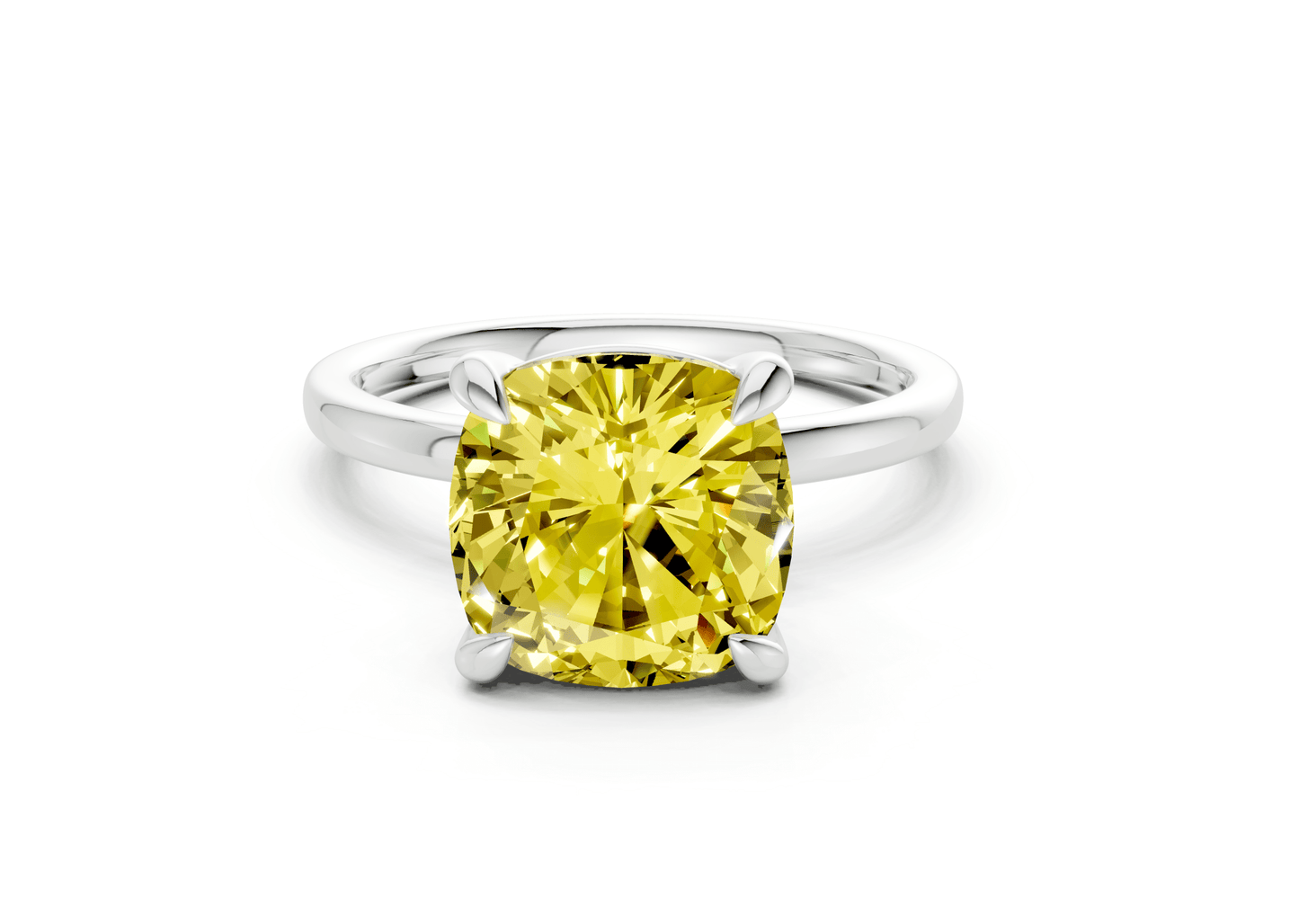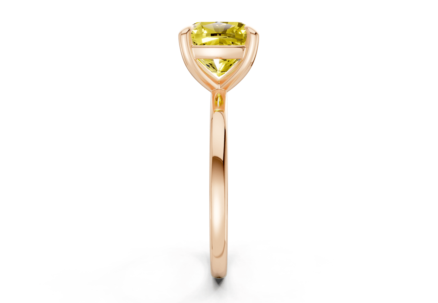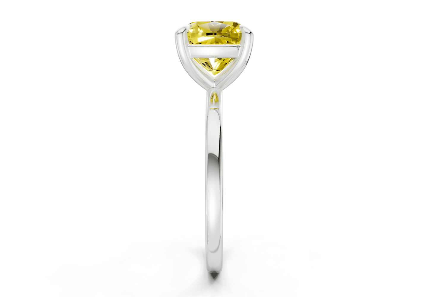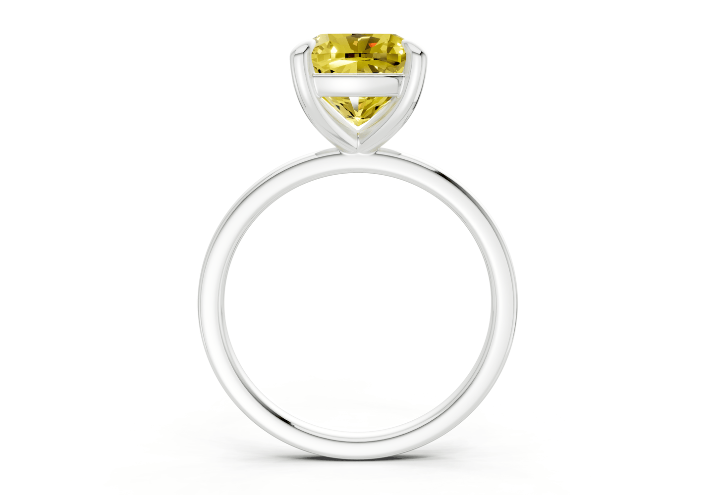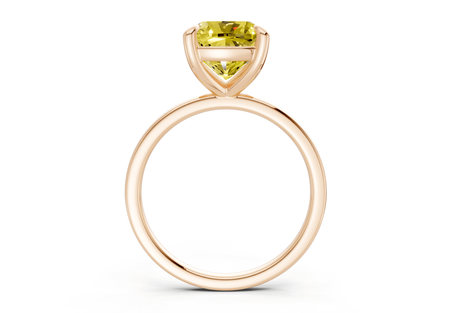 The Clementine Yellow Diamond solitaire ring features a stunning Cushion Squareuare-cut Yellow diamond in a sleek, minimalist setting. Designed to let the diamond shine, this piece embodies modern sophistication with timeless appeal. Perfect for those who appreciate refined simplicity, with the option for custom engraving to make it uniquely yours.