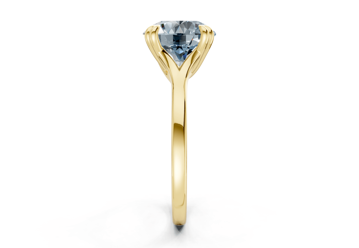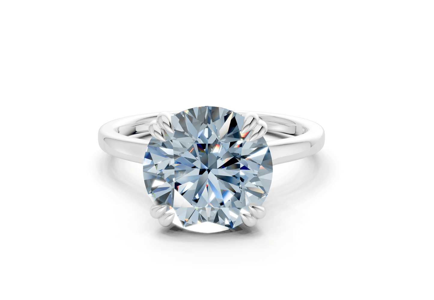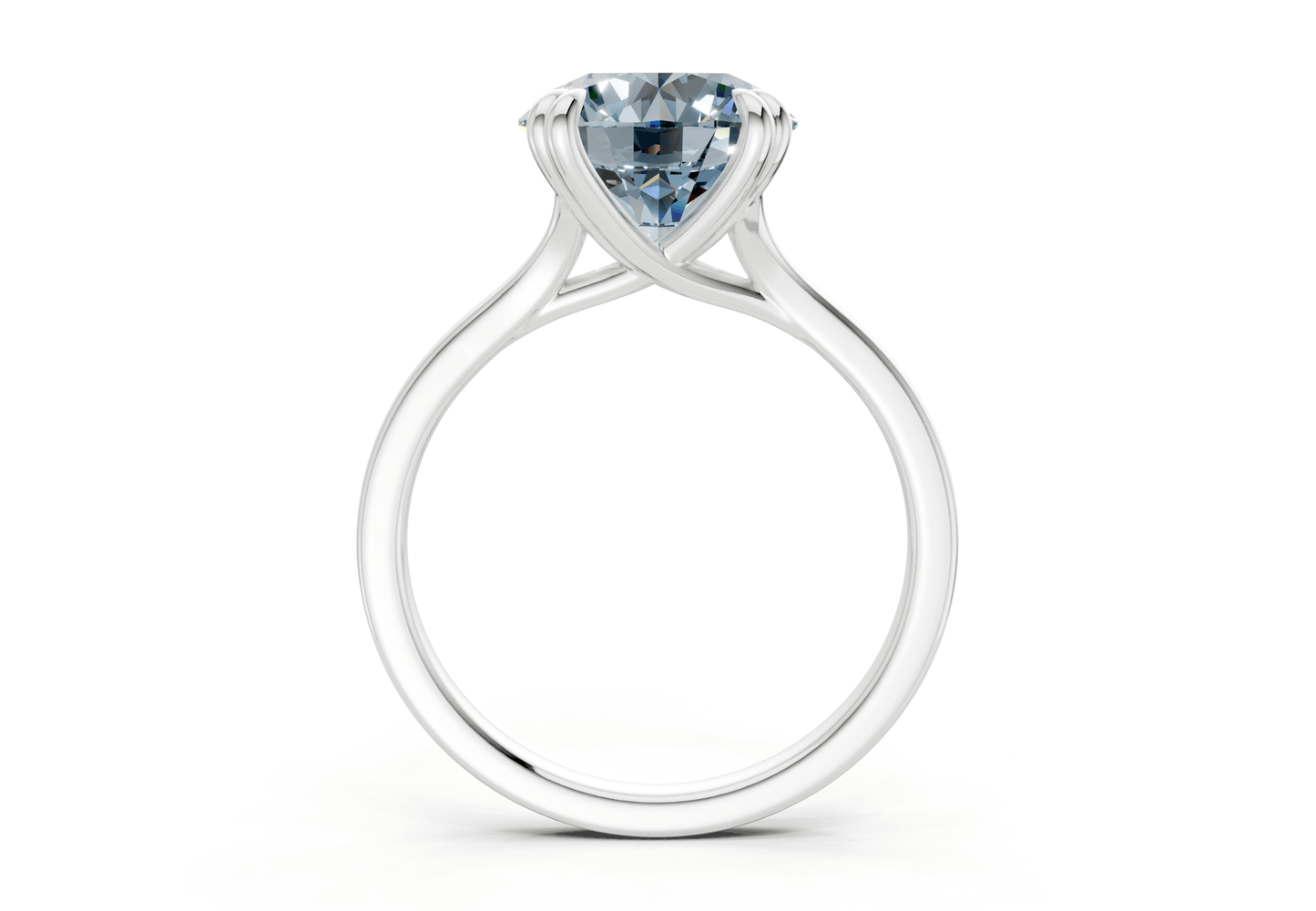 The Dahlia Blue Diamond solitaire ring features a stunning Round-cut Blue diamond in a sleek, minimalist setting. Designed to let the diamond shine, this piece embodies modern sophistication with timeless appeal. Perfect for those who appreciate refined simplicity, with the option for custom engraving to make it uniquely yours.