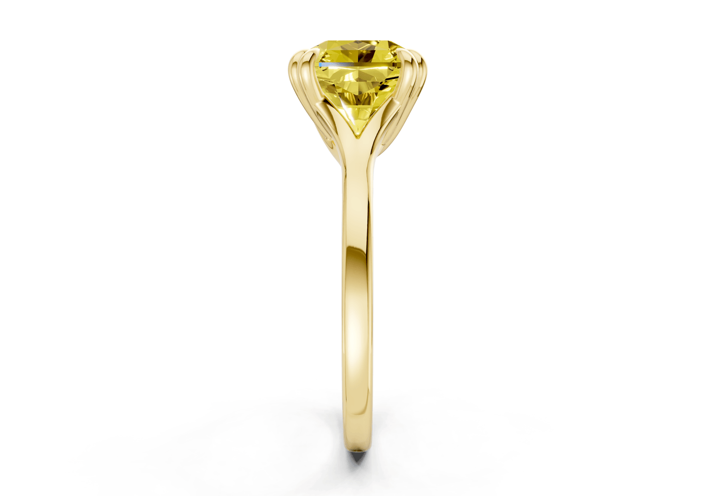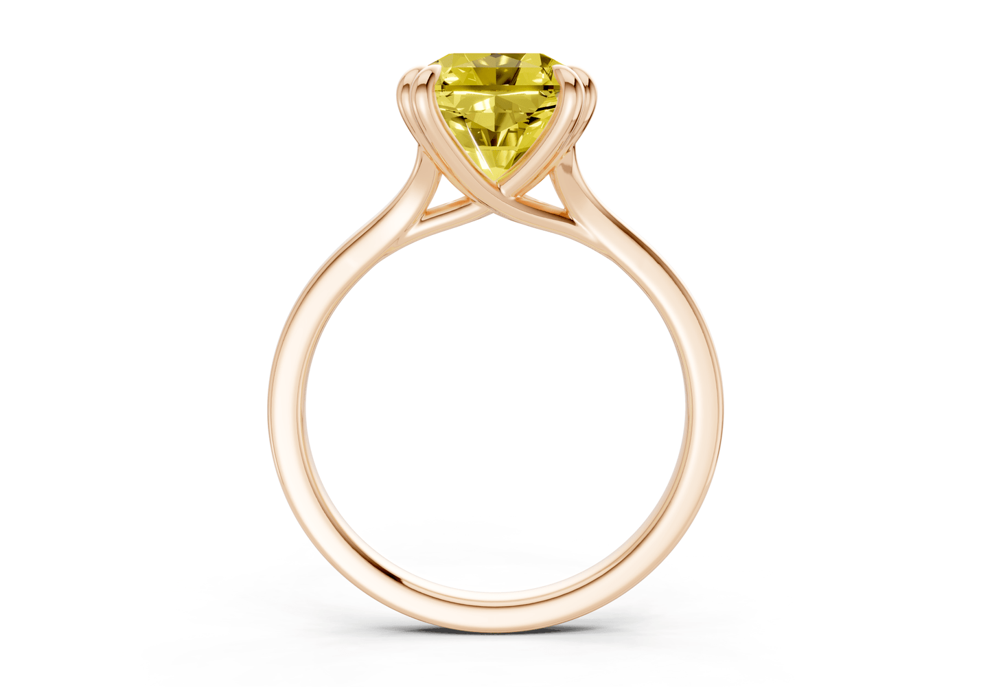 The Dahlia Yellow Diamond solitaire ring features a stunning Radiant Squareuare-cut Yellow diamond in a sleek, minimalist setting. Designed to let the diamond shine, this piece embodies modern sophistication with timeless appeal. Perfect for those who appreciate refined simplicity, with the option for custom engraving to make it uniquely yours.