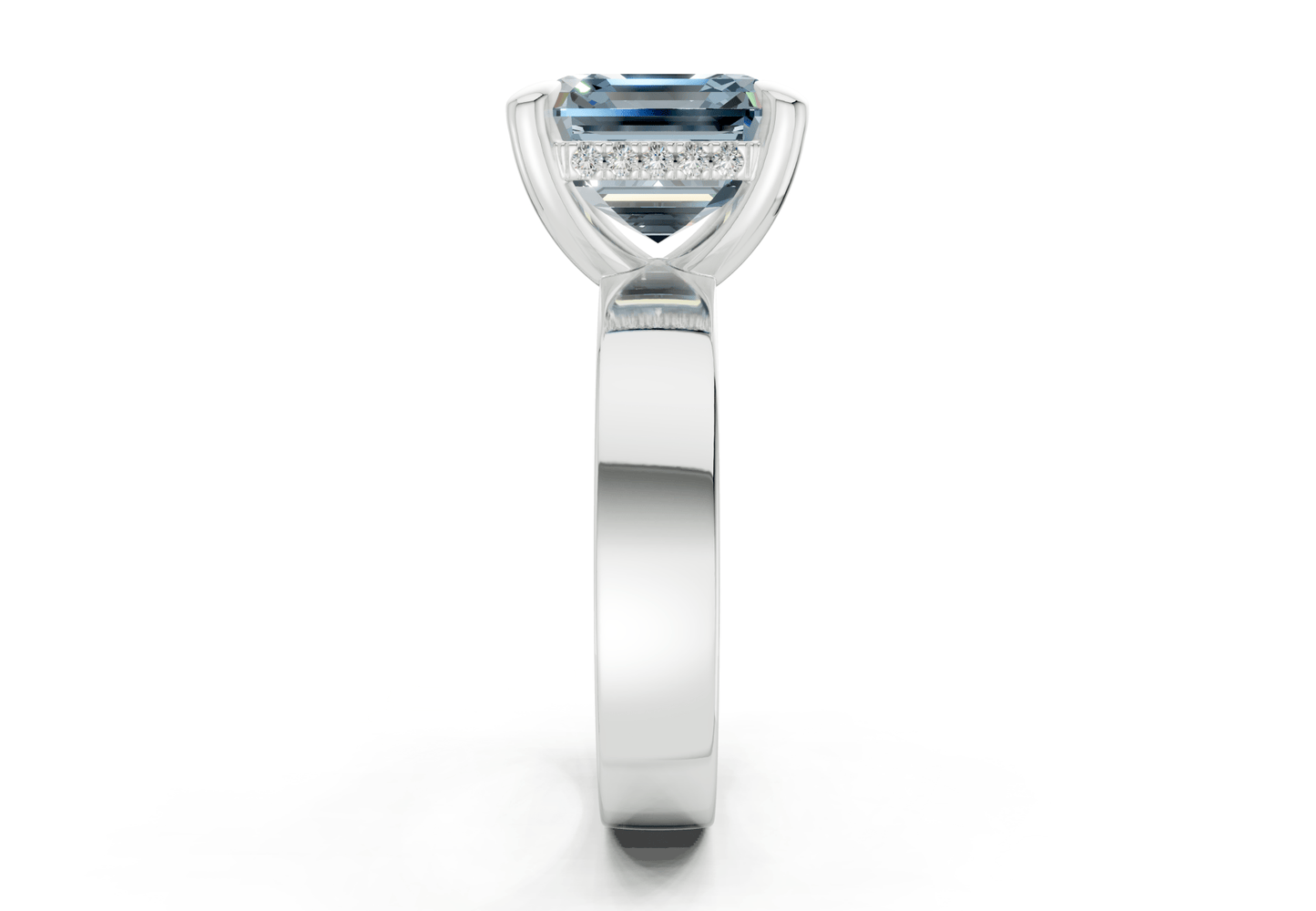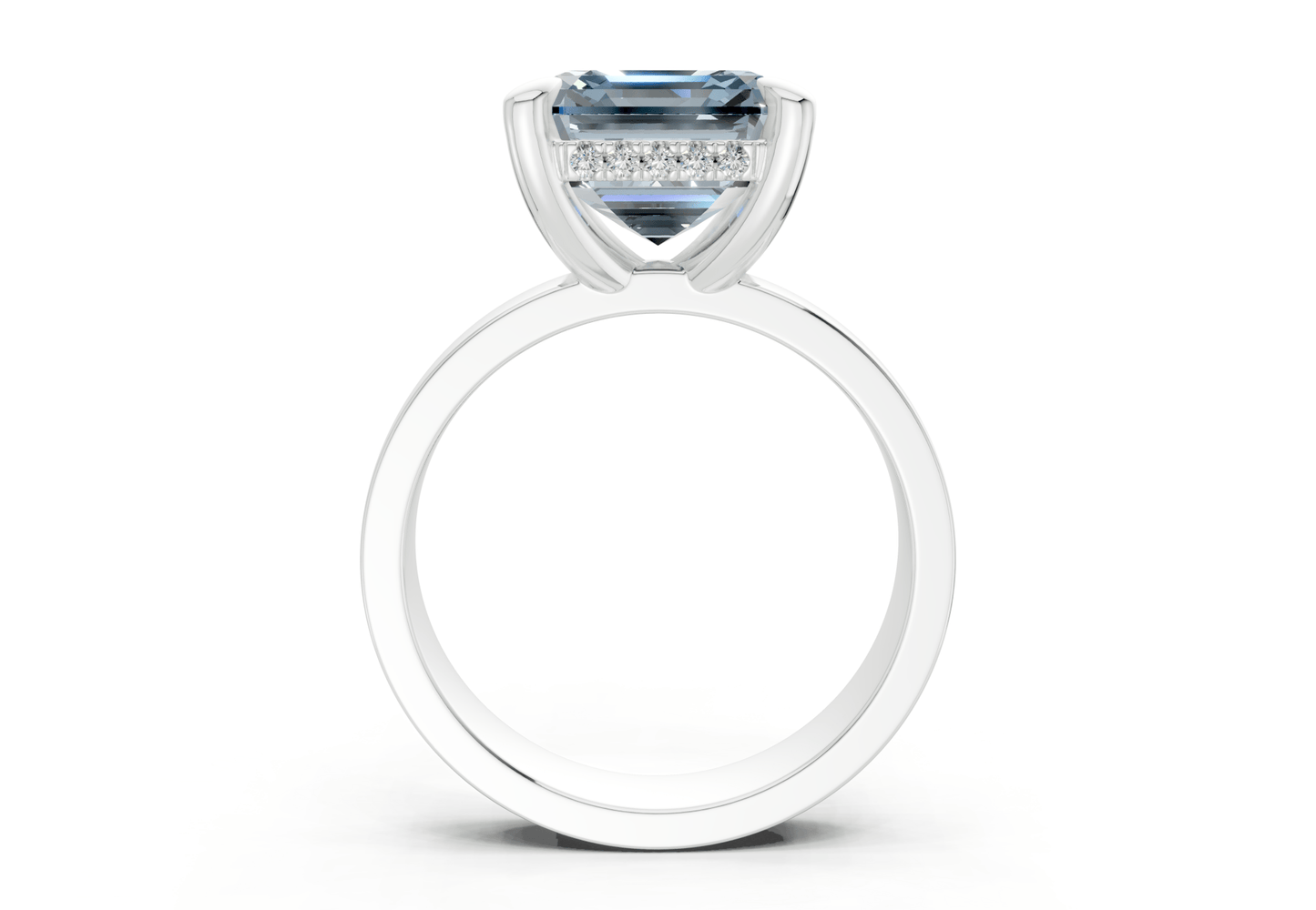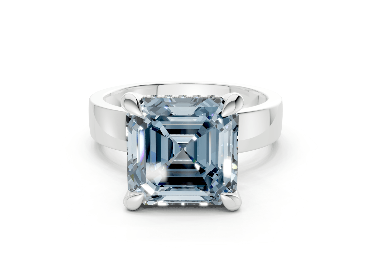 The Echo Blue Diamond solitaire ring features a stunning Asscher-cut Blue diamond in a sleek, minimalist setting. Designed to let the diamond shine, this piece embodies modern sophistication with timeless appeal. Perfect for those who appreciate refined simplicity, with the option for custom engraving to make it uniquely yours.