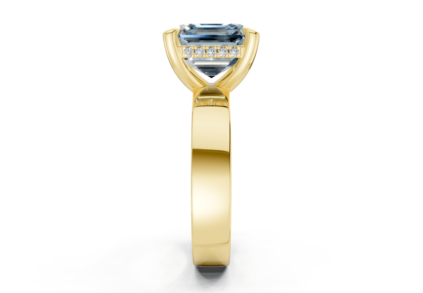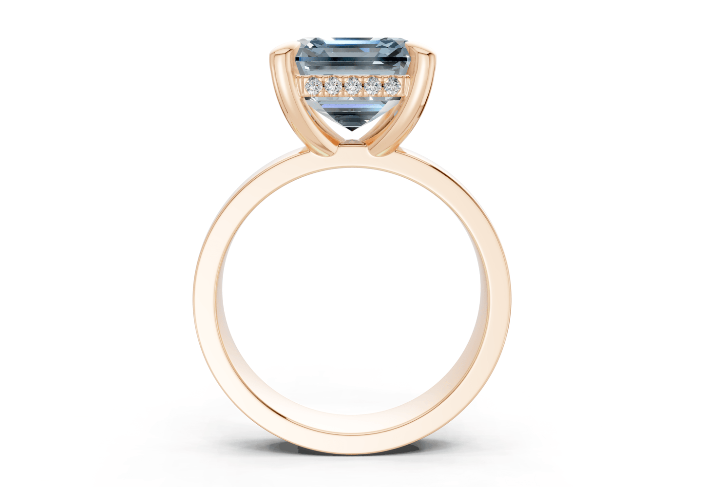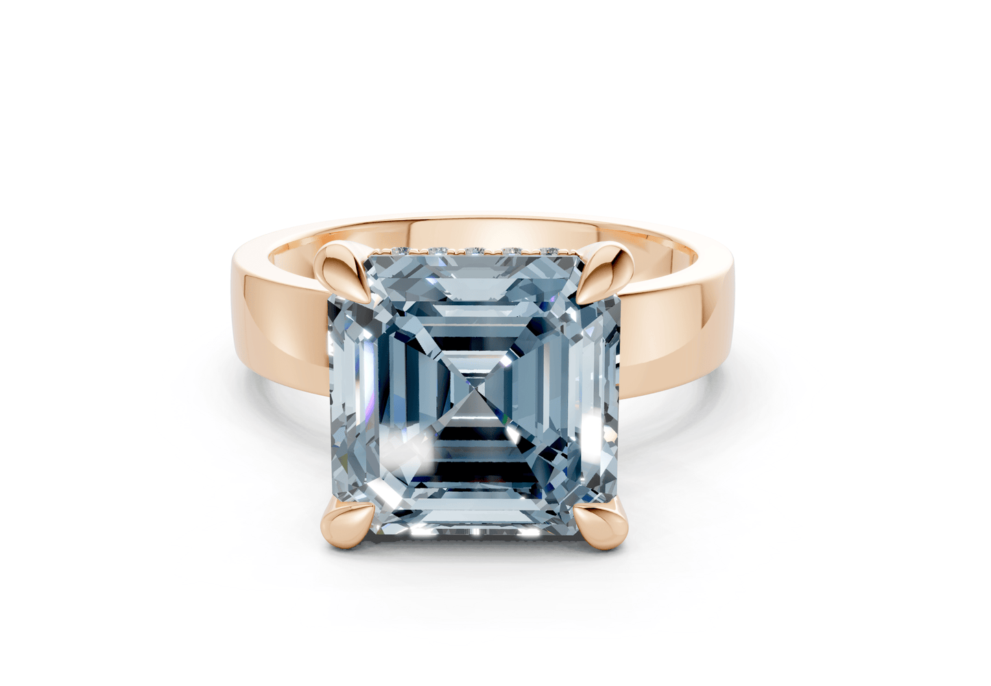 The Echo Blue Diamond solitaire ring features a stunning Asscher-cut Blue diamond in a sleek, minimalist setting. Designed to let the diamond shine, this piece embodies modern sophistication with timeless appeal. Perfect for those who appreciate refined simplicity, with the option for custom engraving to make it uniquely yours.