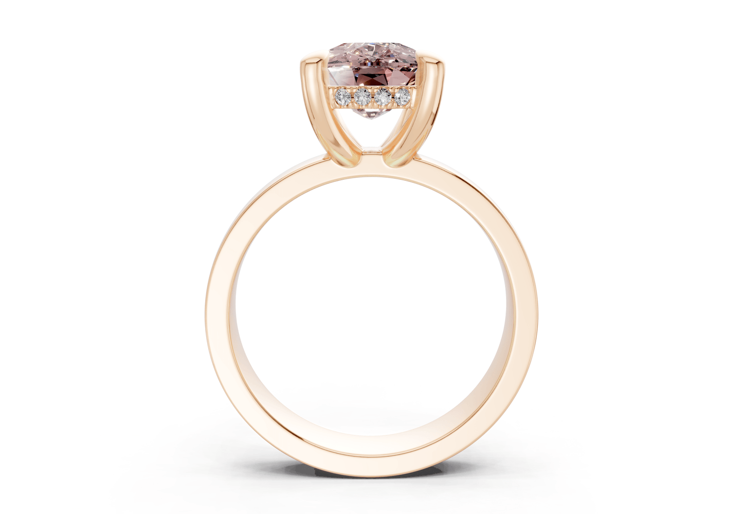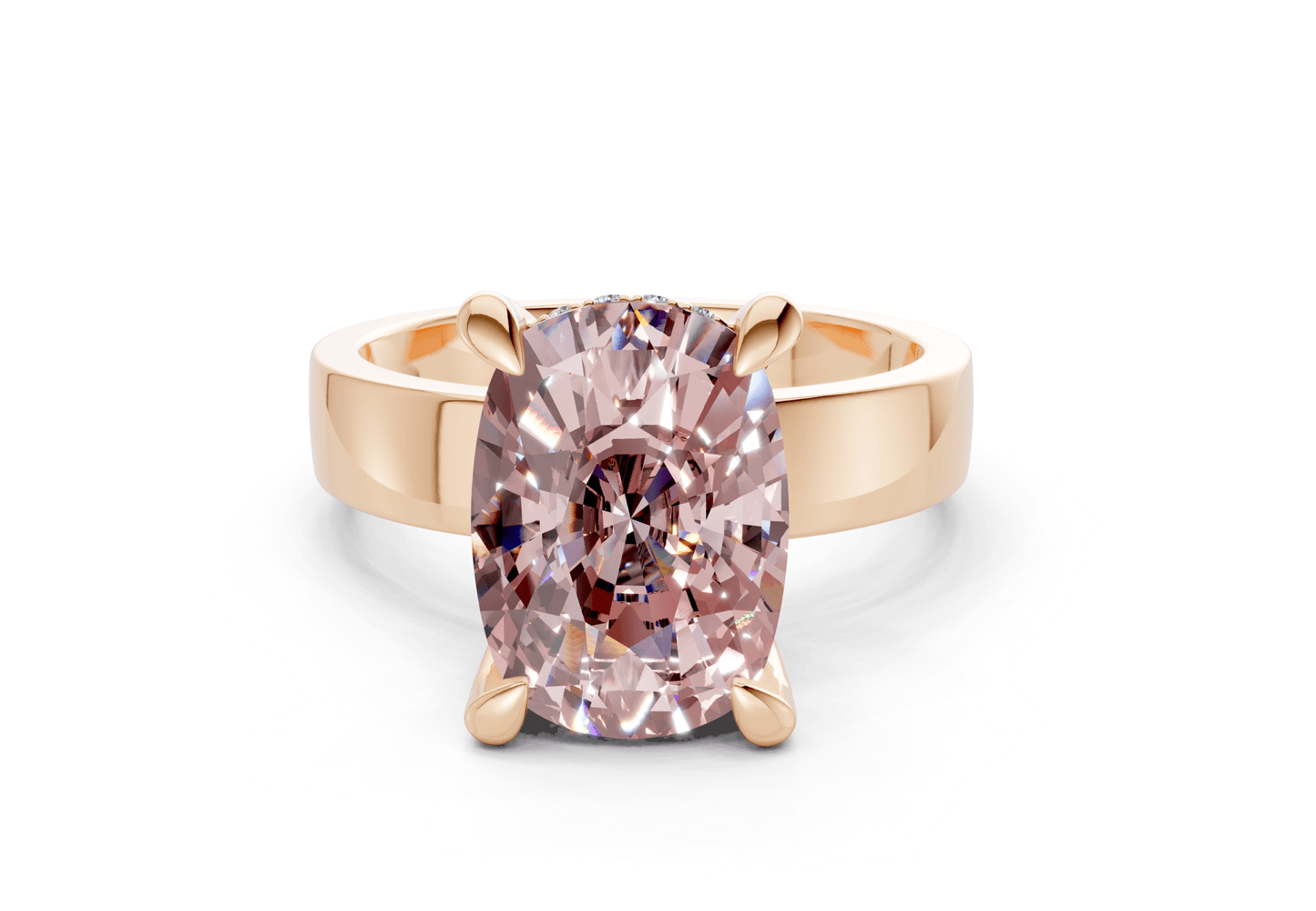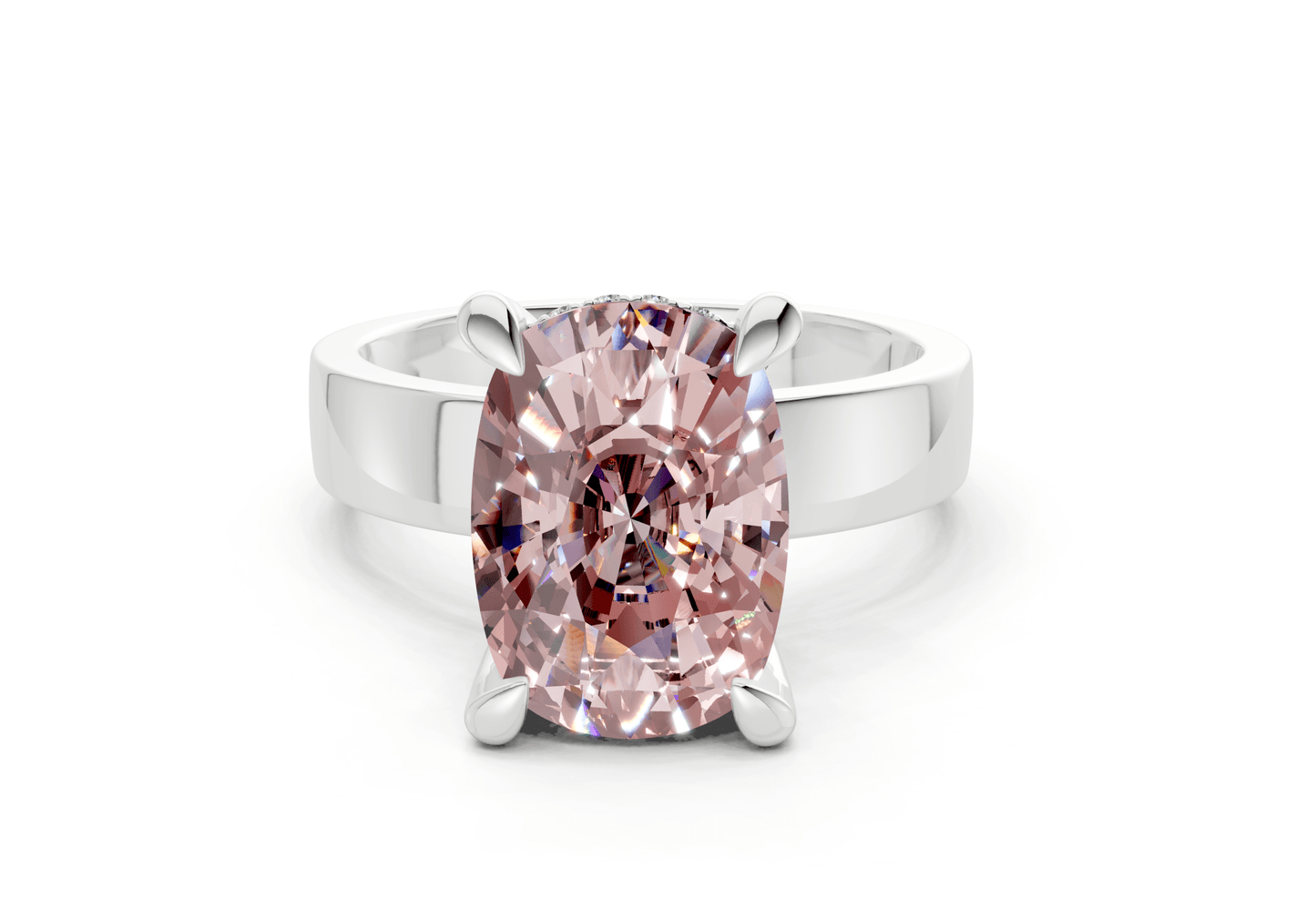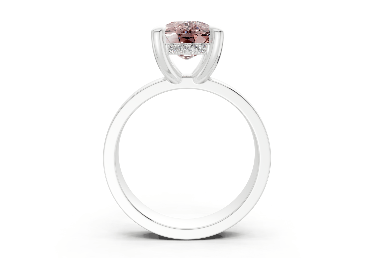 The Echo Pink Diamond solitaire ring features a stunning Elongated Cushion-cut Pink diamond in a sleek, minimalist setting. Designed to let the diamond shine, this piece embodies modern sophistication with timeless appeal. Perfect for those who appreciate refined simplicity, with the option for custom engraving to make it uniquely yours.