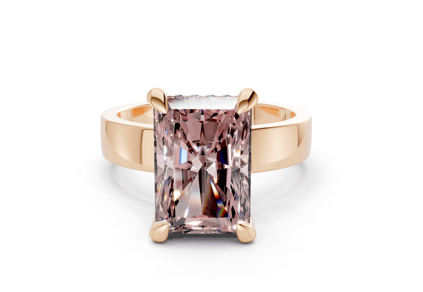 The Echo Pink Diamond solitaire ring features a stunning Radiant-cut Pink diamond in a sleek, minimalist setting. Designed to let the diamond shine, this piece embodies modern sophistication with timeless appeal. Perfect for those who appreciate refined simplicity, with the option for custom engraving to make it uniquely yours.