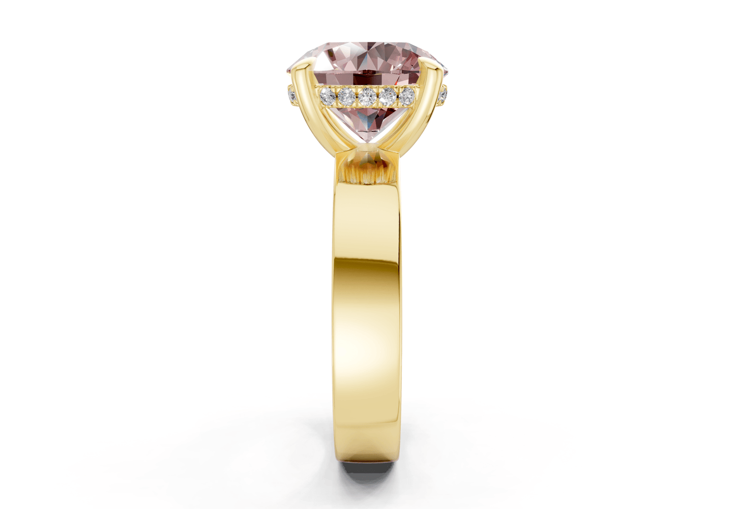 The Echo Pink Diamond solitaire ring features a stunning Round-cut Pink diamond in a sleek, minimalist setting. Designed to let the diamond shine, this piece embodies modern sophistication with timeless appeal. Perfect for those who appreciate refined simplicity, with the option for custom engraving to make it uniquely yours.