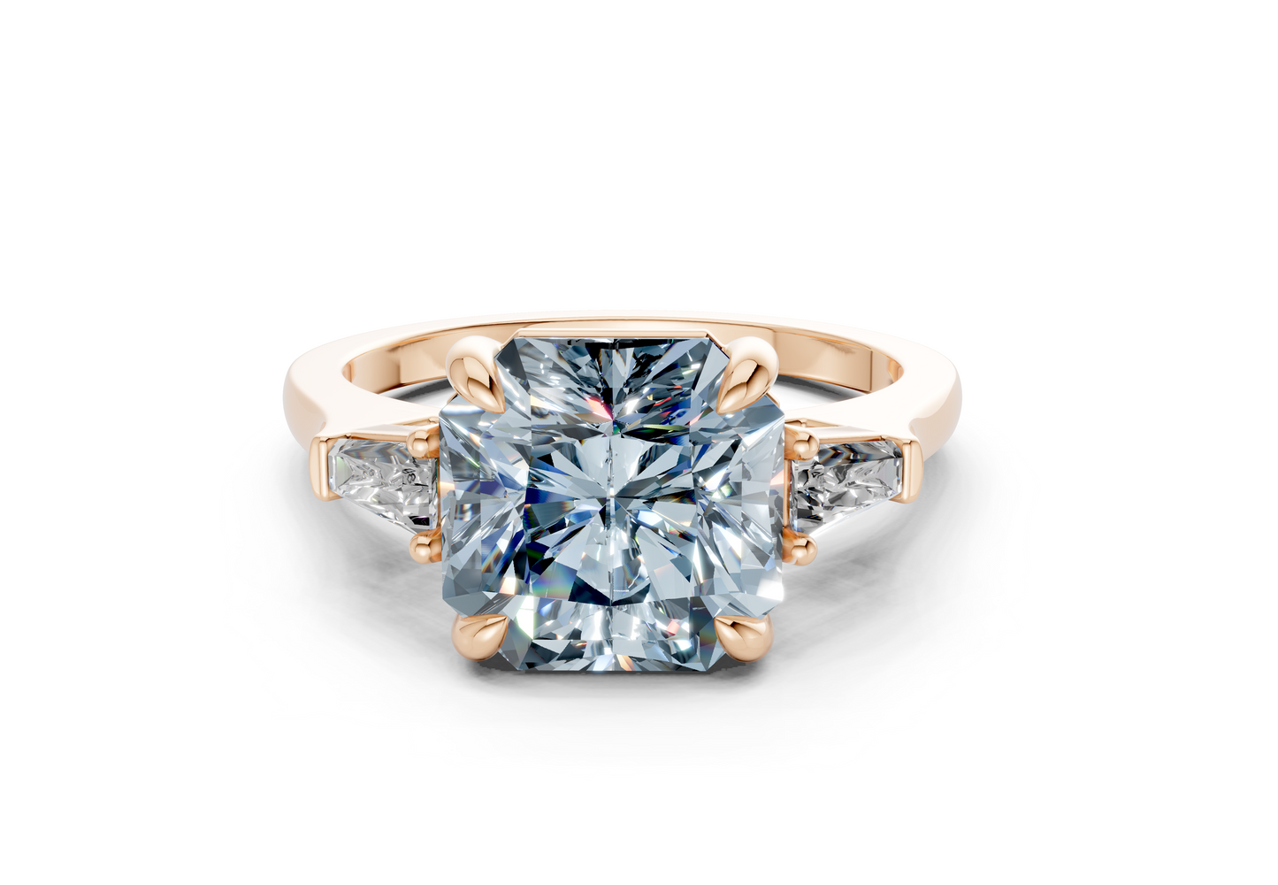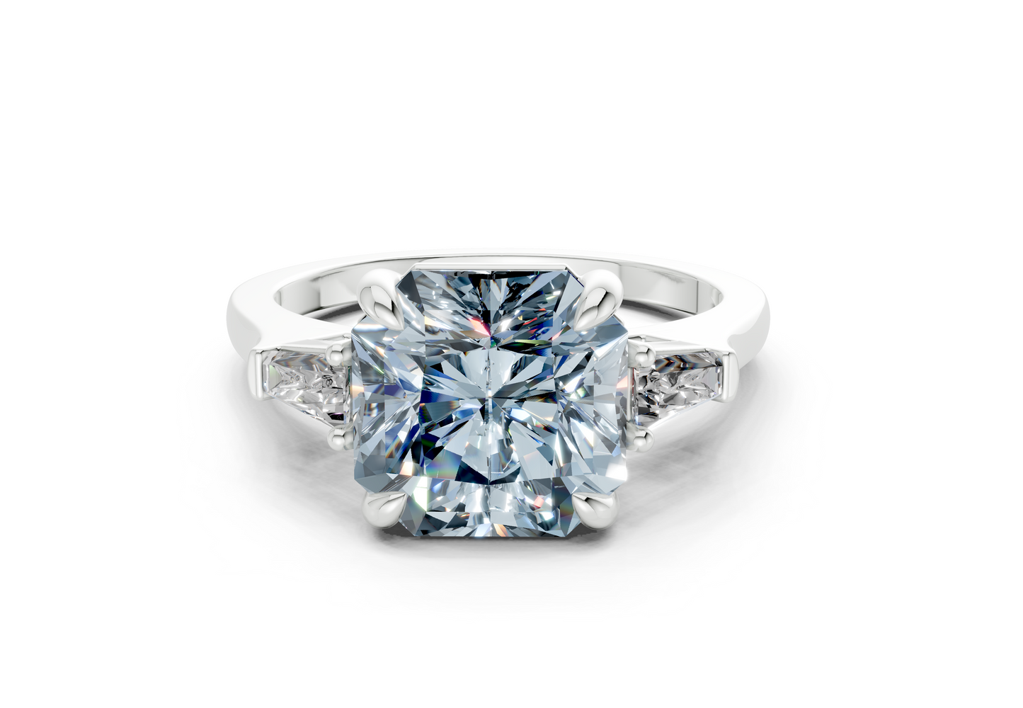 The Isla Blue Diamond ring features a mesmerizing Radiant Square-cut Blue center diamond, flanked by two additional stones that represent your past, present, and future together. Thoughtfully designed to highlight the diamond’s unique beauty, this timeless piece blends modern elegance with deep symbolism. Perfect for those who cherish meaningful design, with the option for custom engraving to make it even more personal.