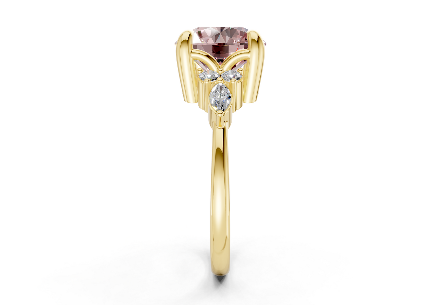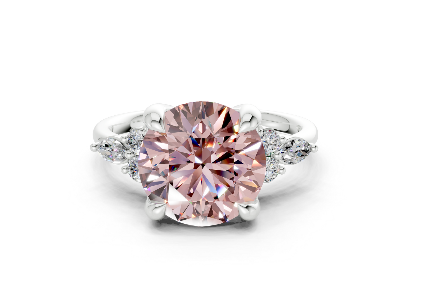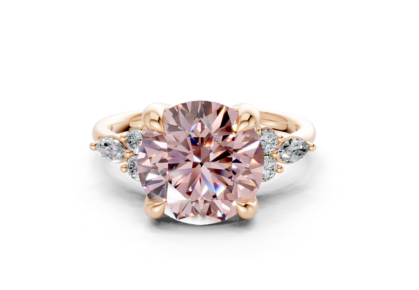 The Lyra Pink Diamond ring highlights a stunning touch of sparkle, making it a perfect choice for anyone seeking a refined yet timeless look. Custom engraving options are available for a personal touch. Round-cut Pink diamond, set in a delicate accent setting that enhances its natural brilliance. Designed to appreciate sophistication, this ring beautifully balances modern style with classic charm. The carefully arranged accents add just the right