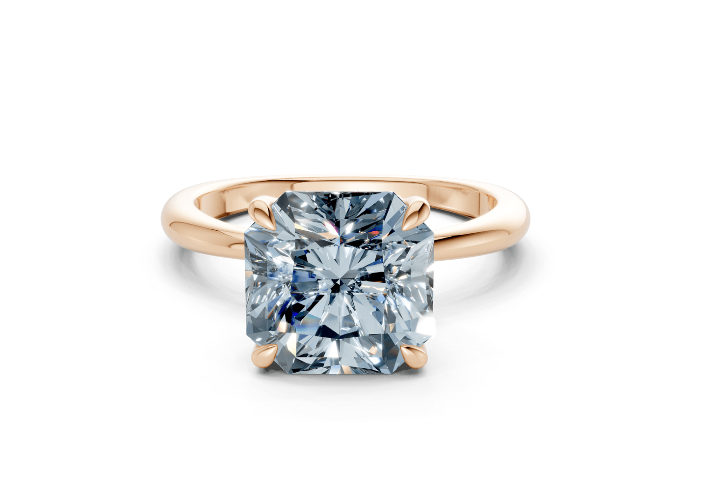 The Marlowe Blue Diamond solitaire ring features a stunning Radiant Squareuare-cut Blue diamond in a sleek, minimalist setting. Designed to let the diamond shine, this piece embodies modern sophistication with timeless appeal. Perfect for those who appreciate refined simplicity, with the option for custom engraving to make it uniquely yours.