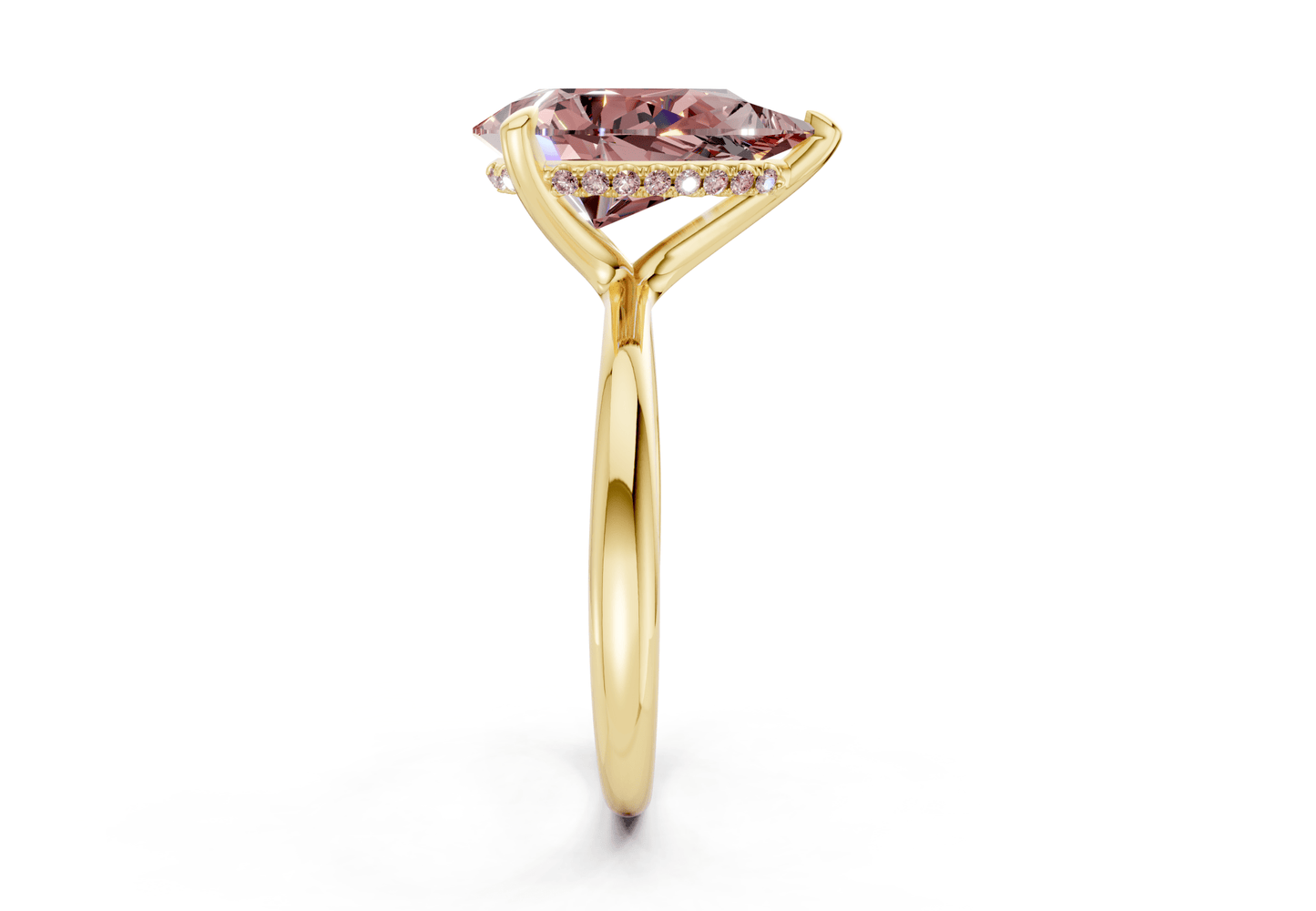 The Marlowe Pink Diamond solitaire ring features a stunning Pear-cut Pink diamond in a sleek, minimalist setting. Designed to let the diamond shine, this piece embodies modern sophistication with timeless appeal. Perfect for those who appreciate refined simplicity, with the option for custom engraving to make it uniquely yours.