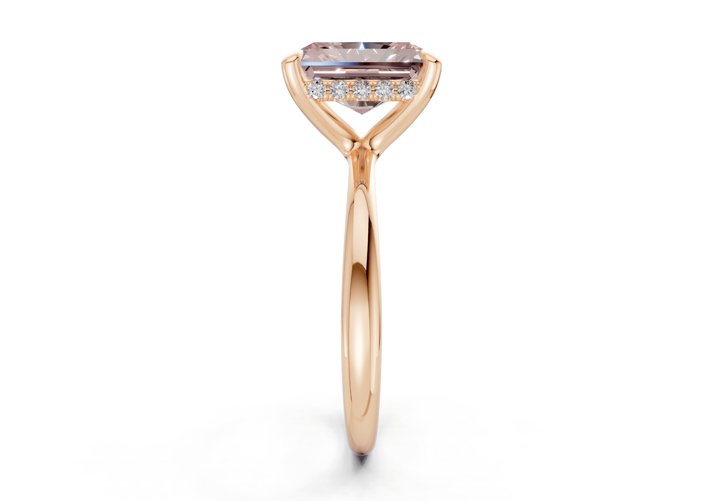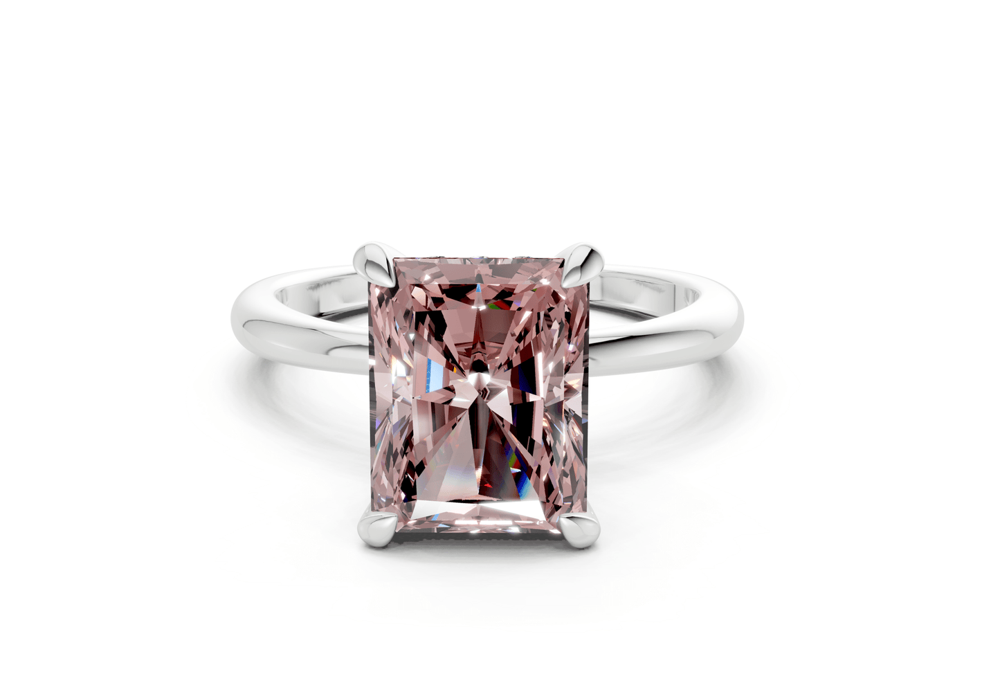 The Marlowe Pink Diamond solitaire ring features a stunning Radiant-cut Pink diamond in a sleek, minimalist setting. Designed to let the diamond shine, this piece embodies modern sophistication with timeless appeal. Perfect for those who appreciate refined simplicity, with the option for custom engraving to make it uniquely yours.