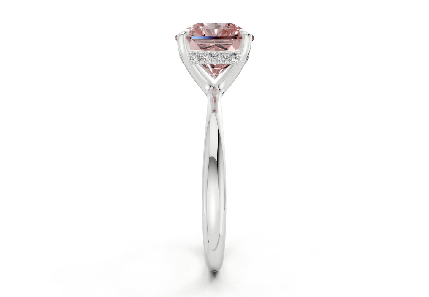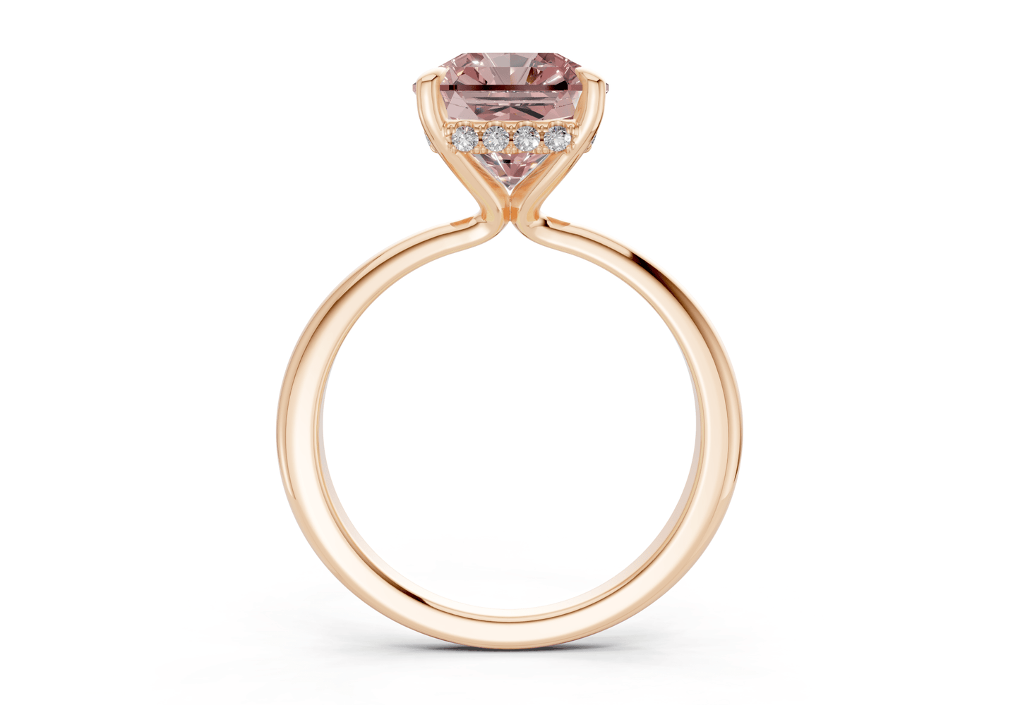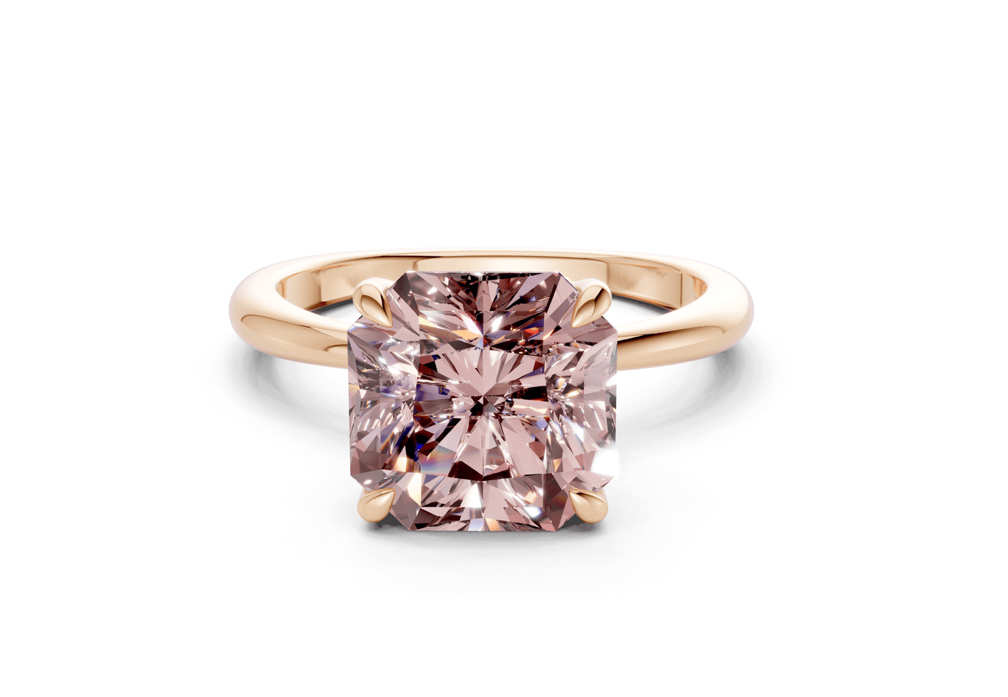 The Marlowe Pink Diamond solitaire ring features a stunning Radiant Squareuare-cut Pink diamond in a sleek, minimalist setting. Designed to let the diamond shine, this piece embodies modern sophistication with timeless appeal. Perfect for those who appreciate refined simplicity, with the option for custom engraving to make it uniquely yours.
