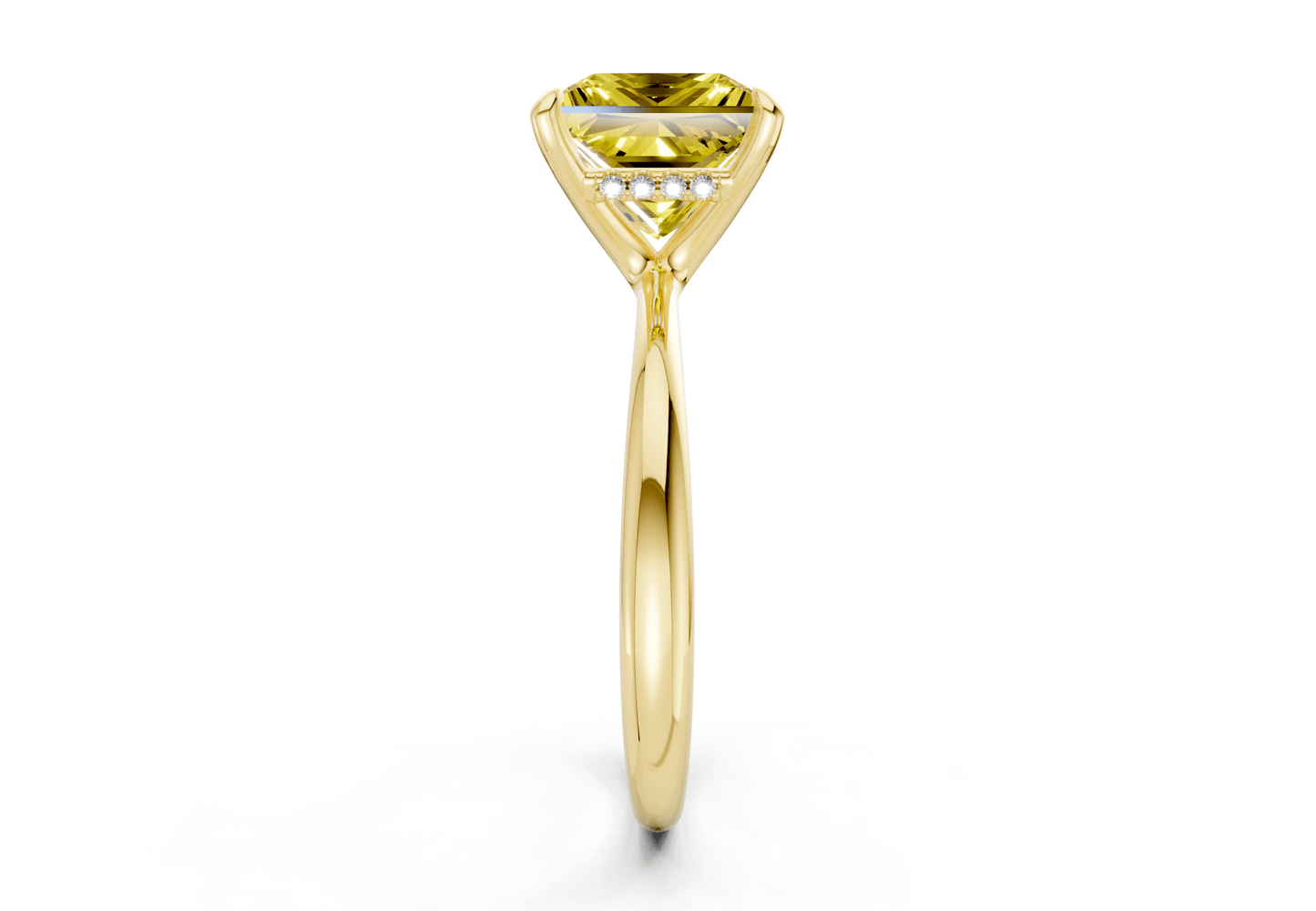 The Marlowe Yellow Diamond solitaire ring features a stunning Princess-cut Yellow diamond in a sleek, minimalist setting. Designed to let the diamond shine, this piece embodies modern sophistication with timeless appeal. Perfect for those who appreciate refined simplicity, with the option for custom engraving to make it uniquely yours.