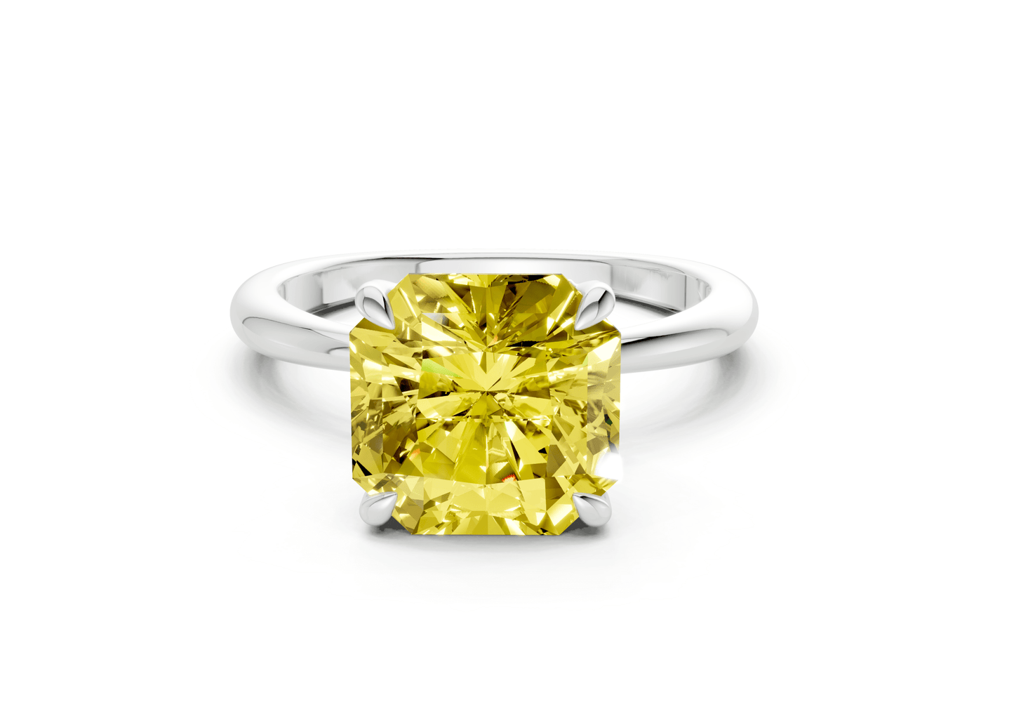 The Marlowe Yellow Diamond solitaire ring features a stunning Radiant Squareuare-cut Yellow diamond in a sleek, minimalist setting. Designed to let the diamond shine, this piece embodies modern sophistication with timeless appeal. Perfect for those who appreciate refined simplicity, with the option for custom engraving to make it uniquely yours.