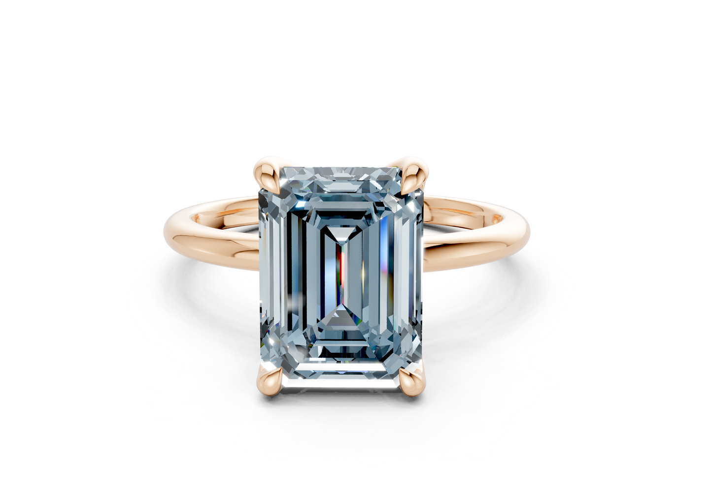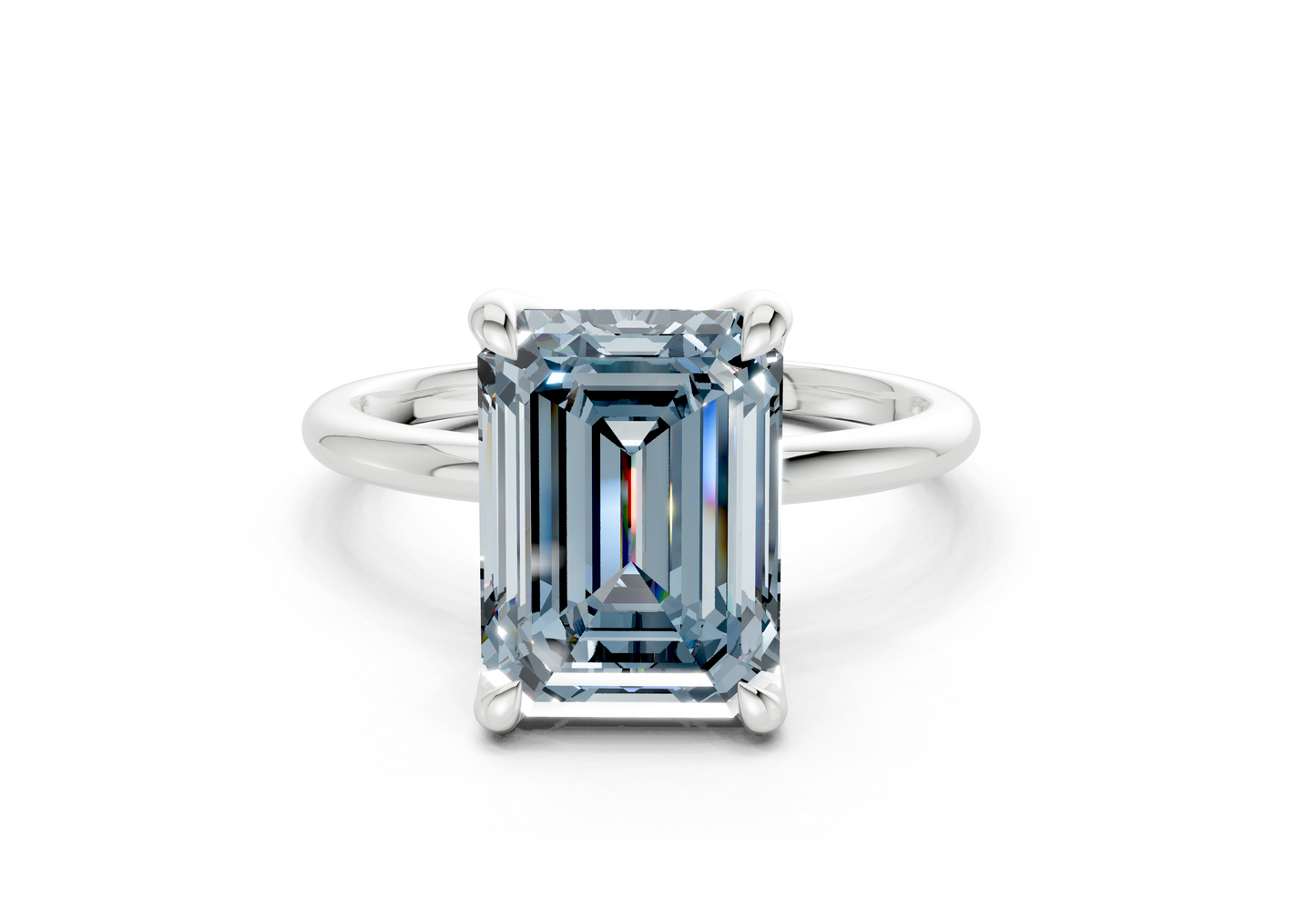 Phoenix Blue Diamond Solitaire Emerald Cut 1.8mm Engagement Ring