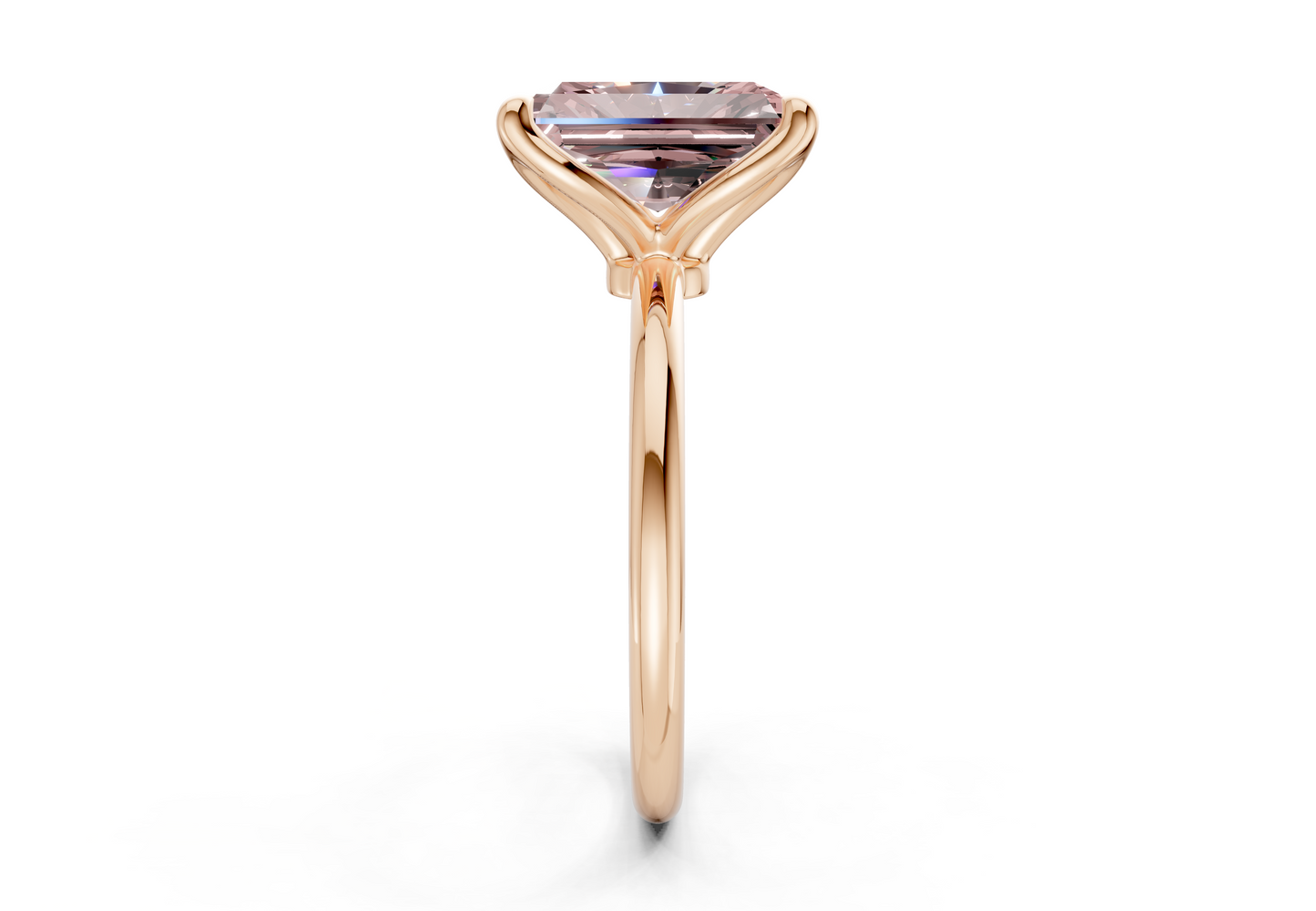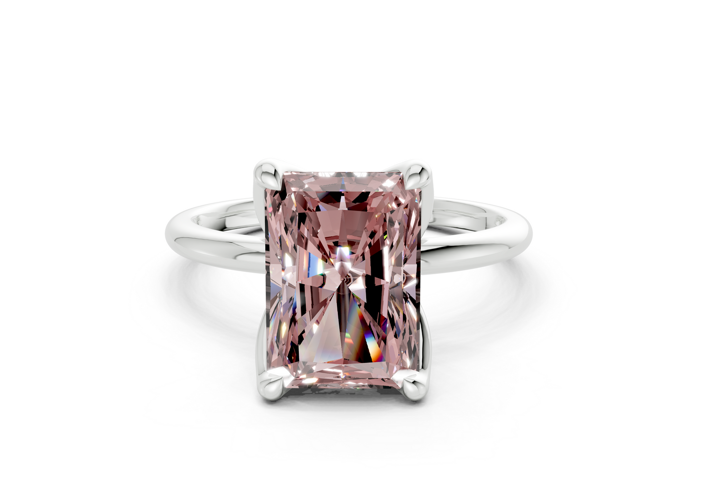 The Phoenix Pink Diamond solitaire ring features a stunning Radiant-cut Pink diamond in a sleek, minimalist setting. Designed to let the diamond shine, this piece embodies modern sophistication with timeless appeal. Perfect for those who appreciate refined simplicity, with the option for custom engraving to make it uniquely yours.
