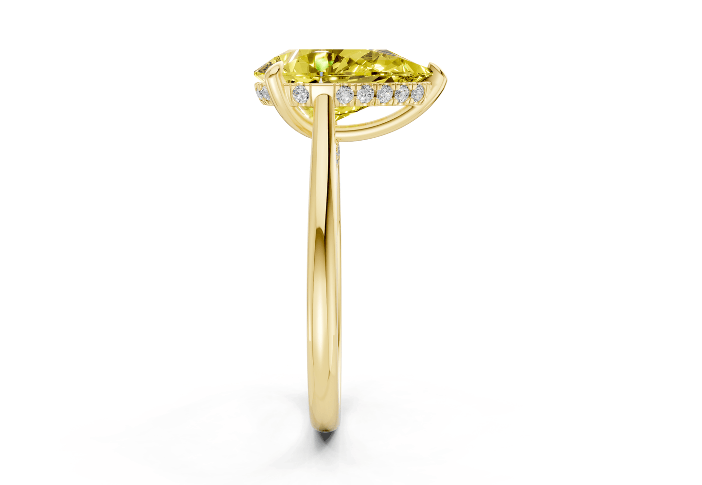The Piper Yellow Diamond solitaire ring features a stunning Pear-cut Yellow diamond in a sleek, minimalist setting. Designed to let the diamond shine, this piece embodies modern sophistication with timeless appeal. Perfect for those who appreciate refined simplicity, with the option for custom engraving to make it uniquely yours.