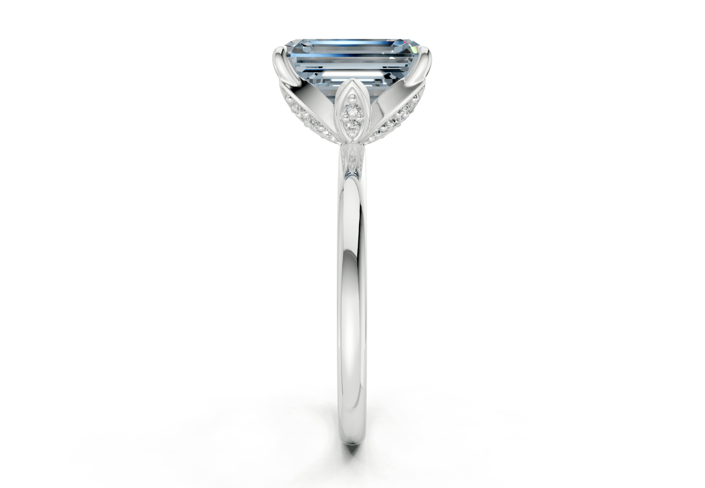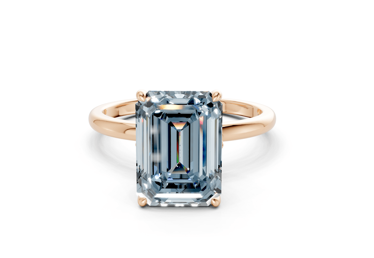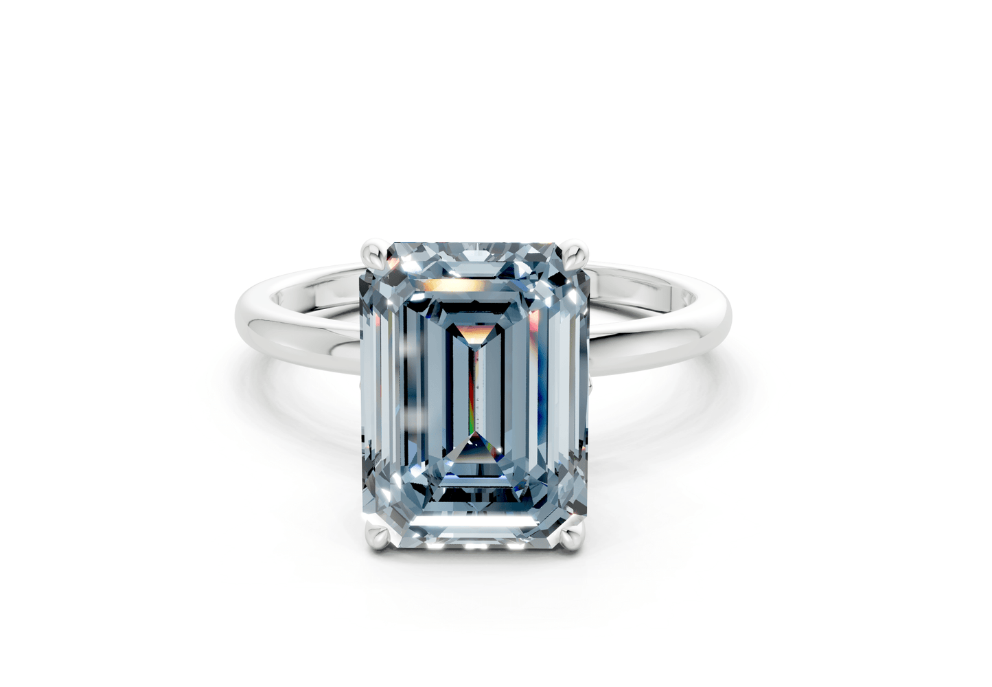 The Skye Blue Diamond solitaire ring features a stunning Emerald-cut Blue diamond in a sleek, minimalist setting. Designed to let the diamond shine, this piece embodies modern sophistication with timeless appeal. Perfect for those who appreciate refined simplicity, with the option for custom engraving to make it uniquely yours.