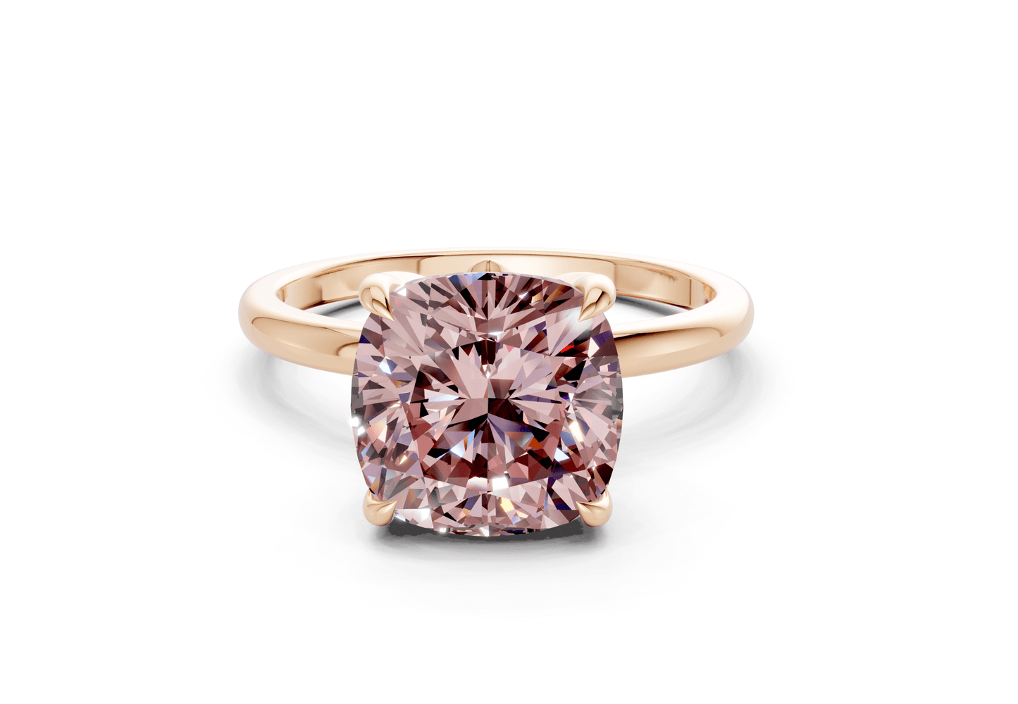 The Skye Pink Diamond solitaire ring features a stunning Cushion Squareuare-cut Pink diamond in a sleek, minimalist setting. Designed to let the diamond shine, this piece embodies modern sophistication with timeless appeal. Perfect for those who appreciate refined simplicity, with the option for custom engraving to make it uniquely yours.