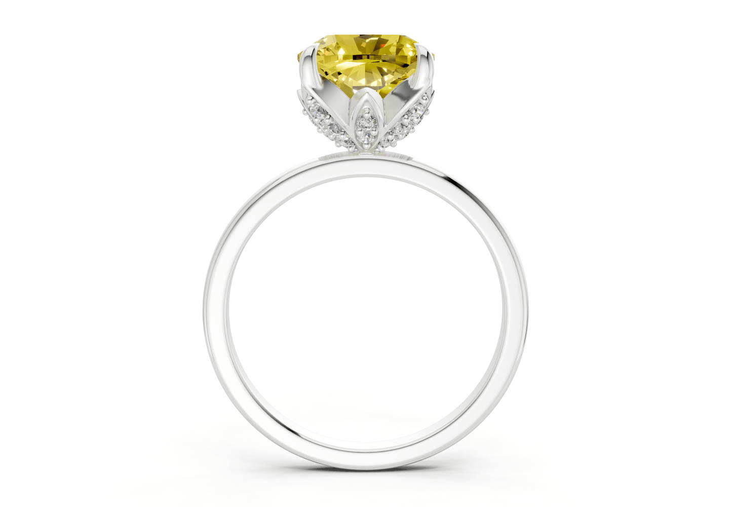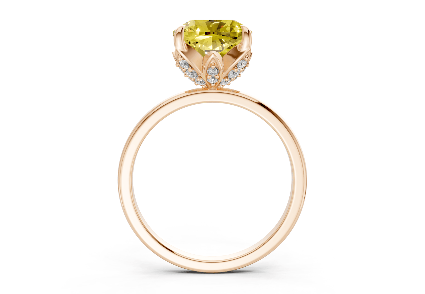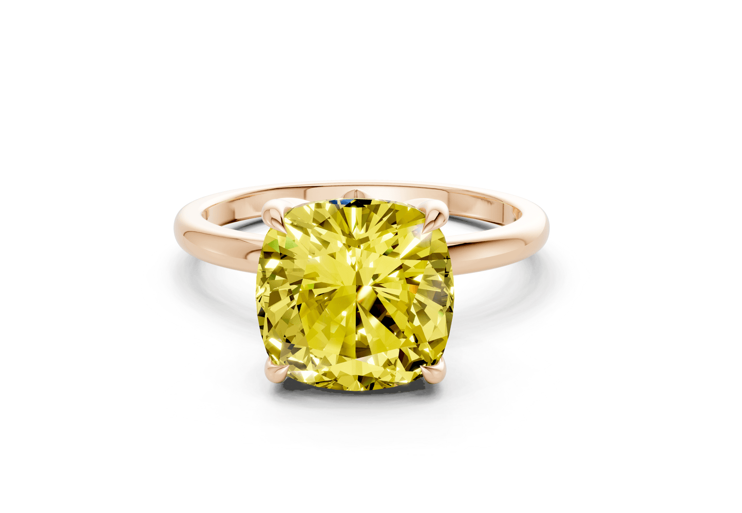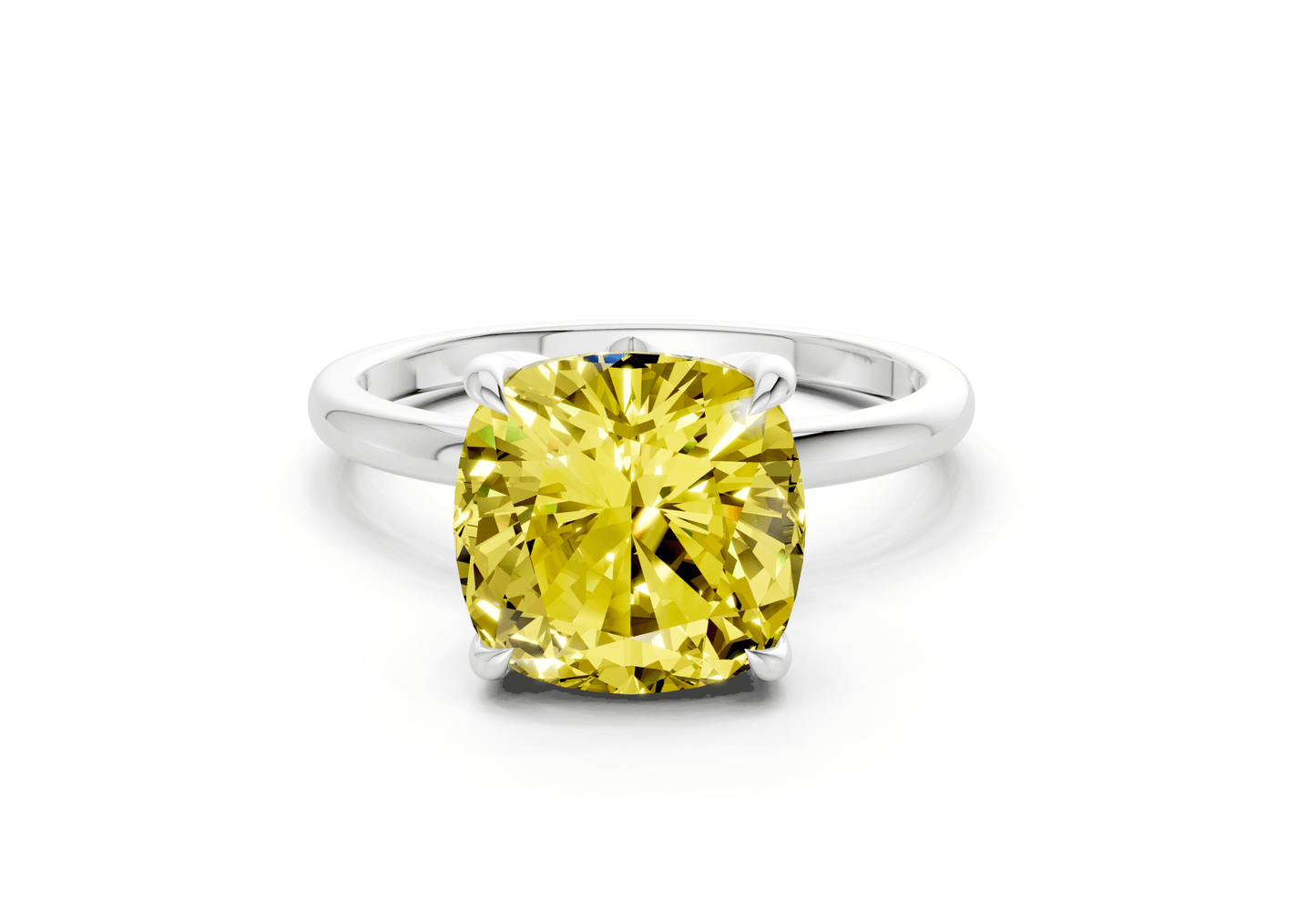 The Skye Yellow Diamond solitaire ring features a stunning Cushion Squareuare-cut Yellow diamond in a sleek, minimalist setting. Designed to let the diamond shine, this piece embodies modern sophistication with timeless appeal. Perfect for those who appreciate refined simplicity, with the option for custom engraving to make it uniquely yours.